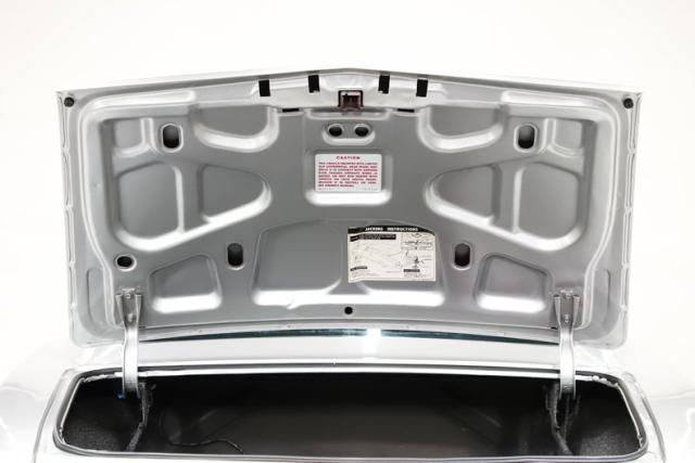 TRUNK COMPARTMENT: Complete and proper! The underside of the trunk lid and jamb are both neatly painted body color. The weatherstrip was replaced and reproduction stickers were added. Inside is a full-size spare tire and jack assembly. Under the mat is all rock solid and rust-free metal that has a nicely applied spatter finish paint. Even the latch mechanism was replaced.
