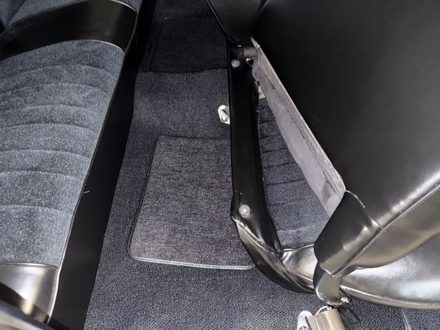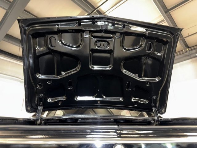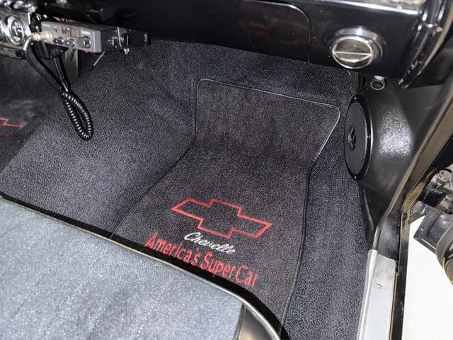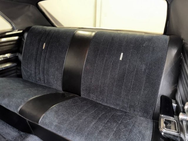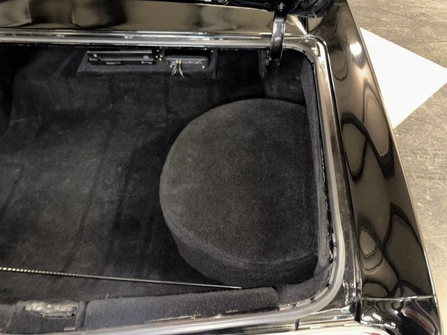 The interior is a beautiful Black on a bench seat with vinyl and cloth, front & back like new, door panels, back panels are all like new. The arm rest and base are good, dash pad is like new, dash cluster with speedometer, clock, fuel gauge, auto gauge aftermarket under center of dash; oil-volts-water like new. Kick panels with speakers like new. Aftermarket radio is like new. Vintage A/C control panel in dash as well as chrome vents. CB under dash. Automatic on column, SunPro Tach mounted on column, 3-spoke rubber grip steering wheel that is like new with Chevy logo horn button. Black carpet and carpeted Chevelle logo like new. The sill plates are good, door handles and window cranks like new. The headliner and Sunvisor’s are like new. The package tray with dual speakers are like new. Rearview mirror is good. Trunk is boxed in with spare tire and cover, jack, car cover and seat belts. Very nice looking inside and in the trunk.