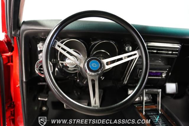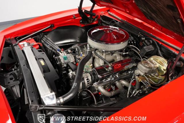 The weaponry starts with a built 350 V8, armed with AFR aluminum heads and Holley Sniper EFI for maximum firepower. A 700R4 4-speed automatic transmission with overdrive feeds a rock-solid 12-bolt rear end. The suspension combines control arms, and coil springs up front with leaf springs out back for the perfect balance of handling and launch. Four-wheel power disc brakes haul it down from speed. Long tube headers and dual exhaust announce your presence. An aluminum radiator with an electric fan keeps this street warrior running cool.