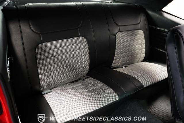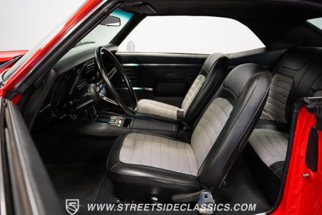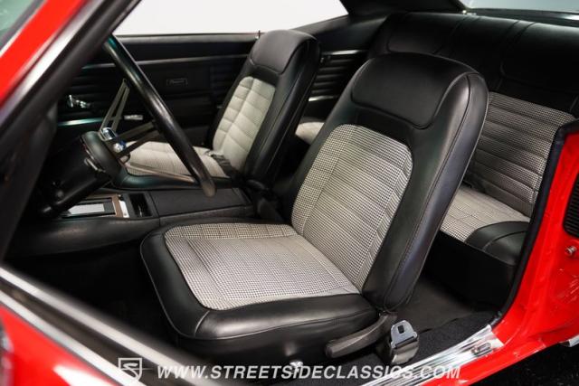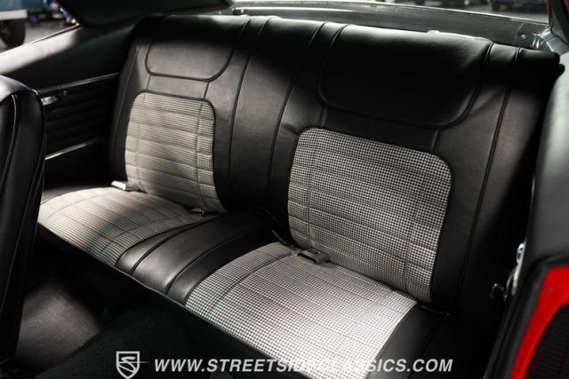 Inside, black and white unite in a cockpit built for action. Houndstooth bucket seats lock you in place when the light goes green. The center console houses RS gauges and a quick-grab shifter ready for action. A Kenwood audio system with CD and rear deck speakers brings the soundtrack, while Vintage Air climate control keeps you cool in the heat of battle. Power steering and a tilt column put total control in your hands.