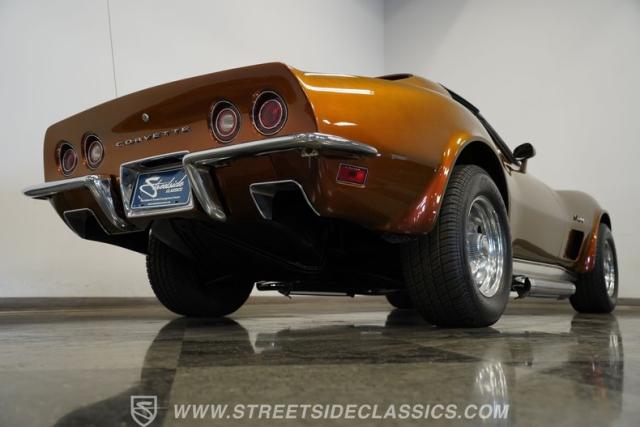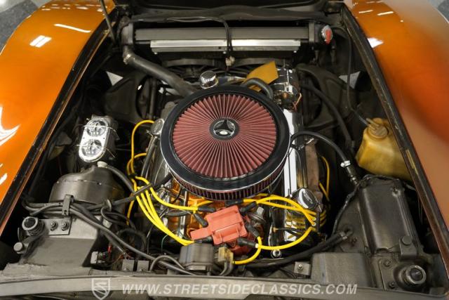 Finished handsomely in custom Brown Metallic paint, this exceptionally clean Stingray turns heads wherever it roams. The classic custom Corvette look is completed with thundering chrome side pipes and a set of chrome 15x8 rally wheels wrapped with Cooper Cobra Radial T/A tires.