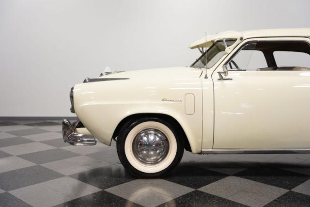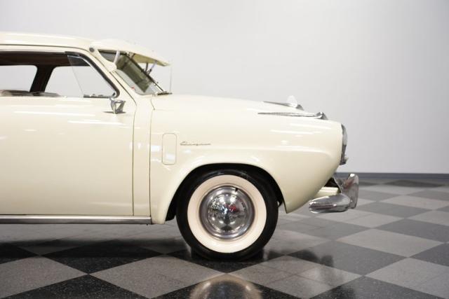 This classic Studebaker features a dependable inline-6 engine, a common sight in its day. It works with a 3-speed manual transmission with an overdrive for relaxed cruising. The electrical system is 6-volt, updated with an 8-volt battery for reliable starting. This Champion rides on a suspension system with control arms and coil springs in the front, while leaf springs with shocks support the rear. Drum brakes provide stopping power, and a vintage floor starter button adds a touch of old-school charm.