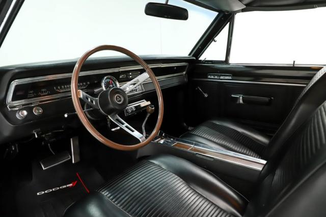 EXTERIOR: Believed to be the original paint! I just inspected it closely and other than a few minor blends I agree it is original paint. Overall, it shows great, with a gloss finish. Some of the edges are buffed thin. It has original glass including windshield which is a good indicator of low miles. Arguably the rarest of all Chrysler high impact colors Code F6 Bright Green was only available for a limited production run in the spring of 1969. The seasonal availability of the color not only makes it incredibly rare but also earned it the nickname \"Spring Green\". Even at the most prestigious of events, you\'ll be lucky to find a real deal \"Spring Green\" car. A new vinyl bumble bee stripe was just added. The original vinyl top presents well. The chrome and trim is exceptionally nice. The fender mounted turn signals are a very cool original option too. It\'s sitting on body color painted rims with poverty hubcaps and new BFG radial red line tires.