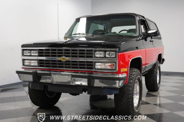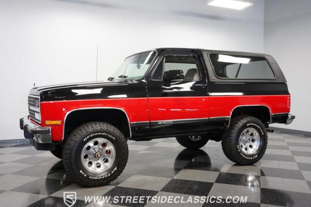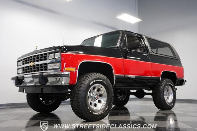 This 1990 Chevrolet K5 Blazer 4x4 Silverado combines classic SUV capability with modern upgrades. From its 350 V8 engine to its premium audio system and lifted stance, this well-maintained K5 delivers authentic 4x4 performance. Call today!