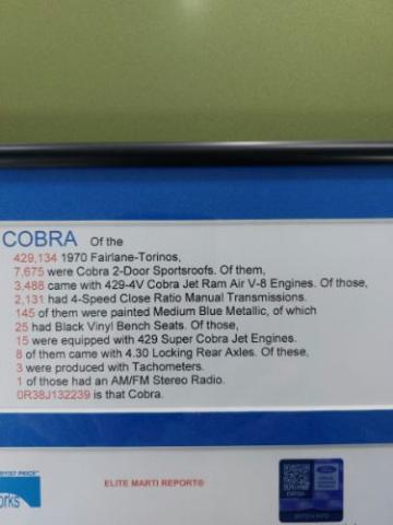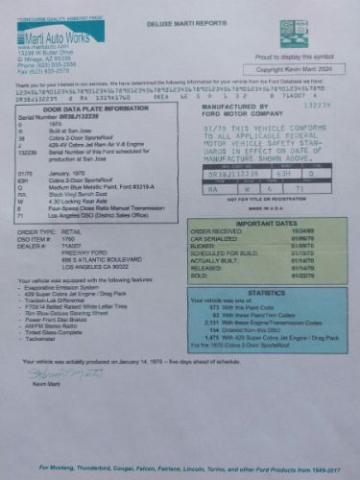 1970 Ford Torino Cobra 429 SCJ Drag Pack | Documented This 1970 Ford Torino Cobra is a fully documented, numbers-matching example equipped with the legendary 429 Super Cobra Jet Ram Air V8 and Drag Pack, one of just 1,475 SCJ Drag Pack Cobras built. Documentation includes the Marti Report and original build sheet. The original drivetrain features a 4-speed close-ratio manual transmission and 4.30 locking rear axle, with factory markings still visible on the rear end and transmission. Factory equipment includes power front disc brakes, a working factory tachometer, and an original working AM/FM stereo. The car has received a sympathetic restoration, including its first repaint in the original Medium Metallic Blue using PPG basecoat with 10 coats of clear, wet-sanded and polished. Jambs, engine bay, and trunk were painted, and the rust-free undercarriage was resealed in correct red oxide. The black interior has been refreshed with a reupholstered front bench seat, new carpet, headliner, and dash, while the rear seat and door panels remain original. It rides on new wheels and tires, with the original wheels and dog-dish caps included if desired. New brakes have been installed (front discs, rear drums), along with new trunk and door weatherstripping. Believed to have 35,344 original miles, this Cobra looks and runs fantastica rare, authentic muscle car with outstanding documentation. Important Information Please Read Before Inquiring Vehicle Location: This vehicle is located at our client\'s home, not in Cadillac, Michigan. Showroom Access: We have a showroom with approximately 35 vehicles, available by appointment only. Contact First: Please call us at 231-468-2809 EXT 1 to speak with one of our representatives before visiting. FREE Consignment Sell Your Vehicle Fast! List your vehicle effortlessly and get it sold in record time! Easy process High visibility Professional support https://www.classiccardeals.com/Page/Consignment.aspx
