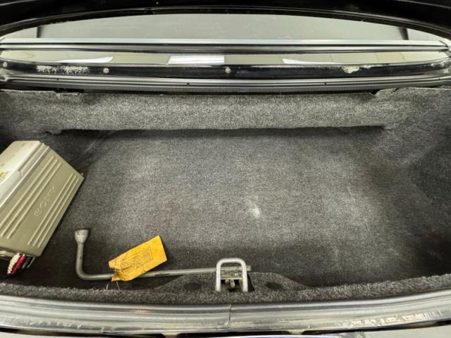 Typically 80\'s simple and sparse, the door panels present as a two tone design with Charcoal Gray leather over light gray carpet and black switchgear and other than the worn elastic on the map pockets, the doors present cleanly. Other than some wear marks and compression on the driver\'s seat, the Charcoal leather bucket seats are in great shape and the back seat is just about flawless. A few thumb controls on the steering wheel add a bit of luxury while the simple layout of the instrument panel, where exposed faux bolts on each gauge housing gives the car a bit of Tron meets Star Wars vibe, is classic 80\'s. An A/C panel is central and an updated Sony AM/FM/CD head unit hovers over a blueprint diagram of the car with warning lights along with a digital clock. We have a typical Ford shifter in the center console over light gray carpet and Mustang branded fitted mats. The trunk is finished in gray cloth coated panels and houses the external CD changer.