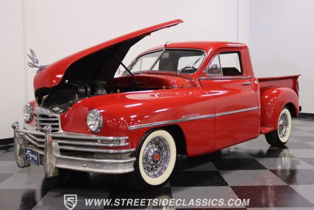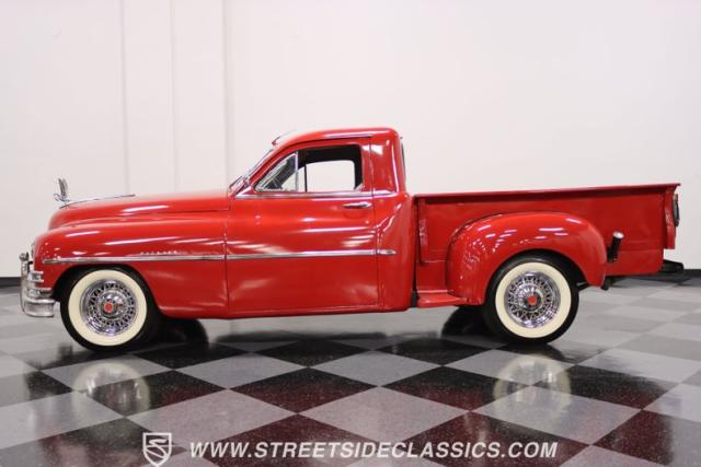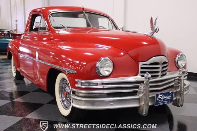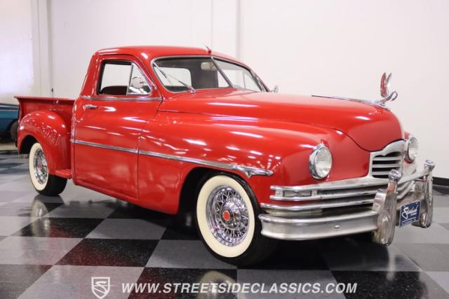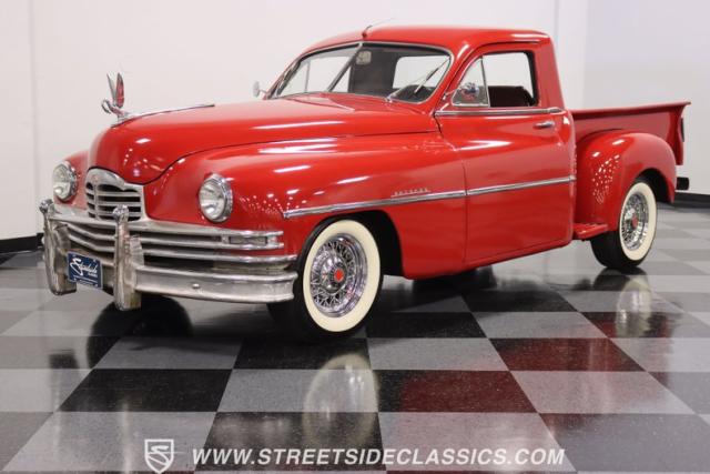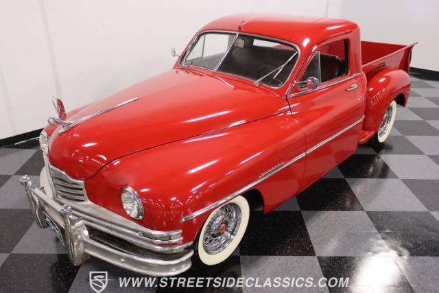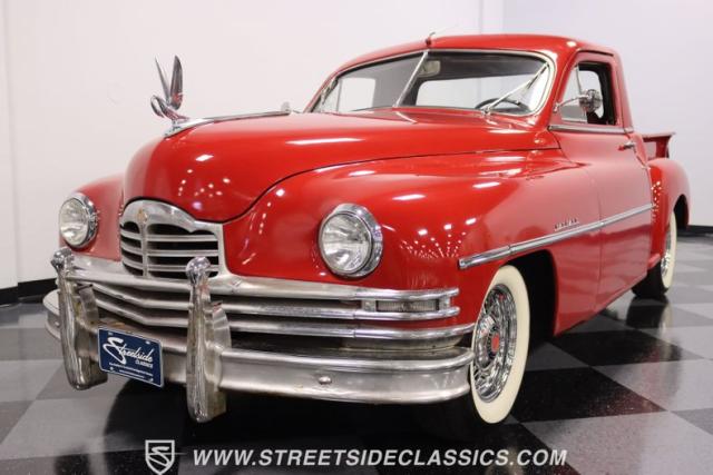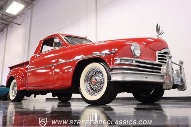 If you really know your Packard history, then you know they had some great pickups before WWII. However, this 1949 Packard pickup is a pure fantasy come to life. It\'s a custom-built pickup created from the 23rd Series cars - one of the most attractively streamlined designs of its era. You even get nice classic details like whitewall tires, Packard wire wheels, a classic bench seat interior, bright factory gauges, and the powerful straight-eight motor. What may just be the most impressive part is how everything looks like it could have been done by Packard. The rounded B-pillars have the clean style you\'d get from a factory stamping. The rounded fenders of the bed go well with the curves of the front. And a nice application of red helps it look even more uniform. So take some extra time looking over a unique creation that dares to dream about a post-war Packard pickup