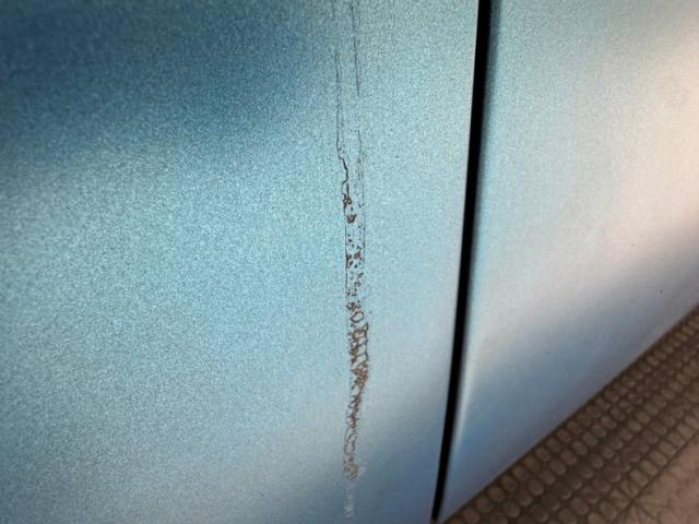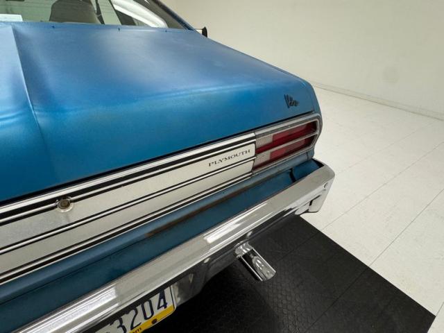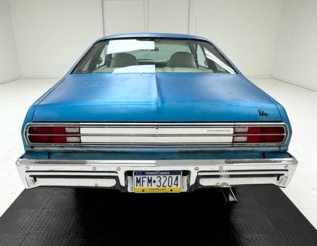 The single stage blue paint shows some age and includes a dullness you might expect on a car that\'s now 50 years old. Some overspray is evident on outer trim,meaning this is likely not the original paint, but it\'s still a testimony of time. You can see some family resemblance here to its upscale cousin, Chrysler\'s Cordoba, especially with the shape of the front fascia, although the Volaretakes a decidedly squarer profile. In back, the rear fascia looks to have gained inspiration from the \'75 Duster with the leftover parts bin adding the tail lights. 14-inch Mopar Road wheels are wrapped in 225/70R14 tires with a late 2022 date code and white letters out present the sporty option. Imperfections include some surface rust, general fading, a chunk of grille missing, an open hole near the side mirror, aforementioned overspray, stains, drips, bubbles and blistering, missing trim, (comes with car), dings, more advance surface rust in the door jamb, evident filler, and some black rattle can overspray.