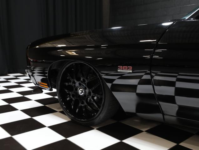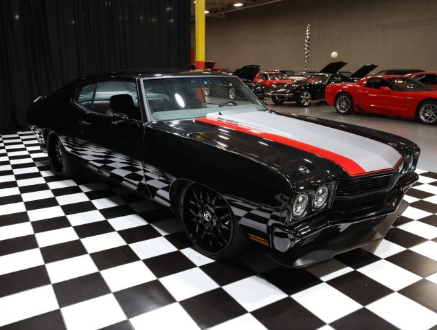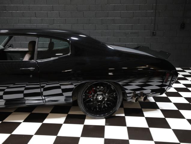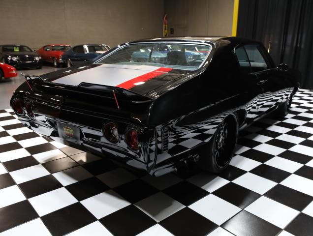 Has 70 front clip This 1972 Chevrolet Chevelle sport coupe was refurbished in 2024 and fitted with a 383ci stroker V8 linked with a Tremec six-speed manual transmission and a Detroit TrueTrac limited-slip differential. Additional equipment includes a COMP camshaft, Dart heads, long-tube headers, and a billet serpentine drive system. The car is finished in black with a red and gray stripe, and an earlier-model Chevelle front clip was installed along with an adjustable rear spoiler, a modified rear valance and quarter panels, a cowl-induction hood, and LED lighting. The car rides on a lowered suspension and 20 Forgiato wheels over four-wheel disc brakes. The cabin was reupholstered in gray vinyl and microsuede, and appointments include air conditioning, a full-length center console, Dakota Digital gauges, and a Bluetooth head unit linked to high-performance speakers. Acquired by the previous owner in 2016, this modified Chevelle is offered with a clean Nevada title. A 1970 Chevelle-style front clip was installed and features a split black grille, LED headlights, and a front air dam, while an adjustable rear spoiler, a cowl-induction hood, and black window trim were fitted during the build. The car was refinished in black with a dark gray and red stripe on the hood and trunk. A custom lower valance is fitted and the rear quarter panels were modified to accommodate the quad exhaust outlets. Black-finished Forgiato 20 wheels are shod with Toyo Extensa HP tires. The car rides on a lowered suspension with an aftermarket front sway bar and coilovers. Braking is provided by four-wheel discs with a Wilwood master cylinder and brake booster. The emergency brake is not functional. The cabin was re-trimmed in gray vinyl and microsuede over the bucket seats, full-length center console, dash pad, and door panels. Red ambient lighting and an Old Air climate control system were installed during the build, and further details include push-button start, a B&M shifter, cupholders, and a JVC Bluetooth touchscreen head unit linked with an aftermarket subwoofer and speakers. The Grant Challenger steering wheel sits on a tilting column and frames Dakota Digital instrumentation including a 160-mph speedometer and supplementary readouts. The tachometer does not work. The five-digit odometer shows 1,300 miles. Total mileage is unknown. The 383ci stroker V8 was installed in 2024, and the seller states it was assembled with Dart cylinder heads, ARP fasteners, Scorpion rockers, and a COMP Xtreme roller camshaft, valve springs, and lifters. Additional equipment includes a CVR serpentine drive setup, a Holley carburetor, an Optima battery, an MSD Pro billet distributor and ignition, and dual electric fans. Power is routed to the rear wheels through a Tremec T56 six-speed manual transmission and a Detroit TrueTrac limited-slip differential with 4.11:1 gears. Long-tube headers flow to an H-pipe midsection. Cowl vents and newer shifter will be installed SPECIAL FINANCING AVAILABLE-DELIVERY IS AVAILABLE PLEASE CALL/TEXT ANYTIME FOR ANY QUESTIONS OR SHIPPING QUOTE!! 847-848-1850