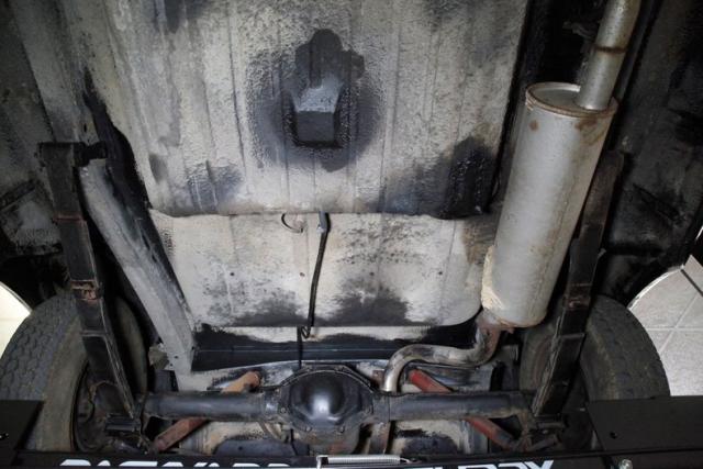 Mostly surface rust with the unibody remaining sound, but not without some areas of surface rust on the original flooring,suspension and rockers. We note new front floor pan and toe kicks courtesy of Auto Krafters, and these are the correct stamped style pans. Providing the ride is an independent coil sprung front suspension, and leaf spring rear suspension as well as drum brakes all around being noted with the front brakes having just been treated to new shoes.