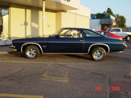 1973 Oldsmobile Cutlass S 442 (only 10,137 Built) Blue/White, PS/PB, Tilt, Clock, Factory Gauges, 4-Spoke Sport Steering Wheel, Floor shift, Swivel Bucket Seats, AM/FM 8-Track.
