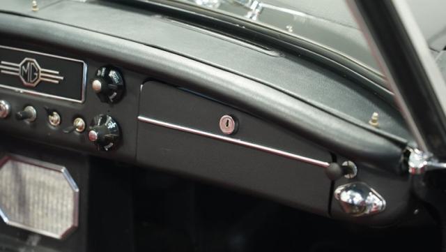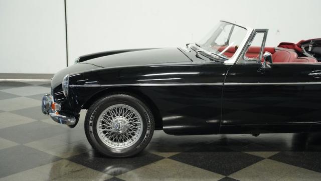 This 1967 MG MGB Roadster exemplifies why these cars became legends. Dressed in black, this MGB flaunts its timeless lines and balanced proportions. Chrome bumpers and a perfectly aligned grille complement the sleek bodywork. The 14-inch wire wheels with genuine knockoffs and 175/70R14 tires blend classic style with modern grip.