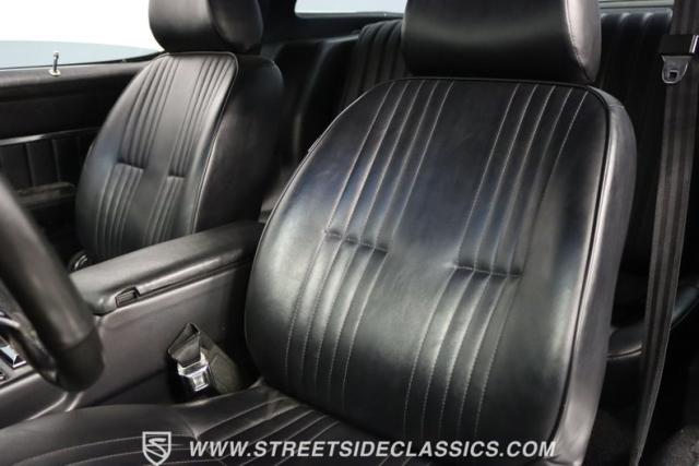 The black interior has a sporty style and a fresher feel. The best place to understand that is the front seats. They are newer Procar style individual bucket seats that give you comfortable support. And the taut headliner, nice door panels, and smooth dash make this quite inviting. There\'s the right comfort with power windows, an armrest center console, a retro-style AM/FM stereo with Bluetooth, and provisions for air conditioning (it will need servicing to bow cold again.) And this is built to be a fun driver with an upgraded sports steering wheel on a tilt column, and a carbon fiber gauge panel with backlit AutoMeter Cobalt readouts. Plus, it has push-button start!