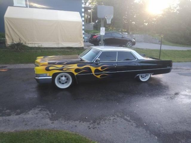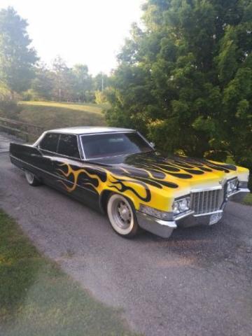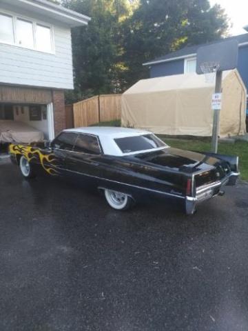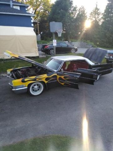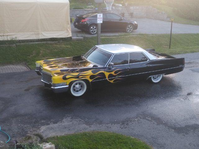1970 Cadillac Sedan DeVille custom streetrod. A Cadillac with a lot of Personality. Built on the west coast around 1999, this was in the \'Best of the Northwest\' in Washington State. 4 door hardtop with no post between the doors. Very solid body and frame, excellent floors. Professional Black paint job with pearl white roof and old school custom flames down the hood and sides. Ed Roth signature Rat Fink on the trunk. Nice red leather interior. custom made console with CD player and controls. Power windows locks and seats, tilt/telescopic wheel. Original Caddy 472 engine, stroked to 528 cubic inches. Edelbrock 2115 intake and 750 cfm carb. MSD electronic ignition, Dual 3\' flowmaster exhaust. LOTS of power and torque. BFG Silvertown wide whitewalls on true centerline wheels. Car has slightly lowered stance. This car was nicely done with lots invested. It has been stored for the past several years and shows some wear overall a good car. Runs and drives great ! Power seats stopped working recently (both sides). Has some paint fade on the trunk lid. Drive it the way it is or maybe change to some black steel rims and tires for a more current look. This would be a perfect candidate for hydraulic suspension. Clear Title. Please Note The Following **Vehicle Location is at our clients home and Not In Cadillac, Michigan. **We do have a showroom with about 25 cars that is by appointment only **Please Call First and talk to one of our reps at 231-468-2809 EXT 1 ** FREE Consignment Visit Our Site Today Easy To List Your Vehicle and Get it Sold in Record Time.