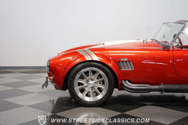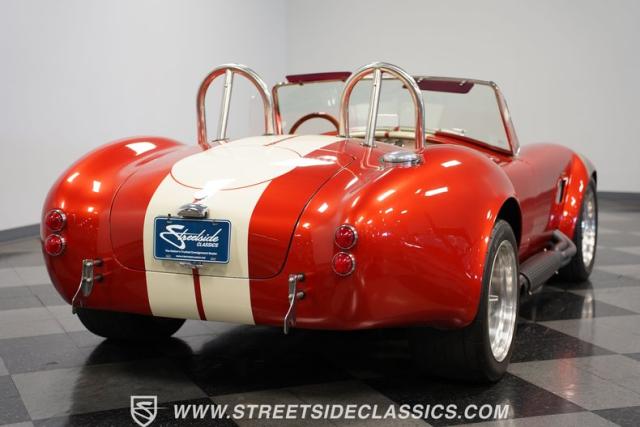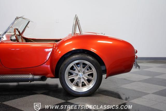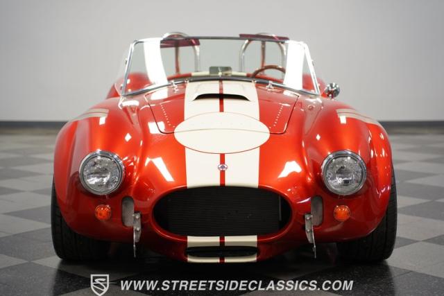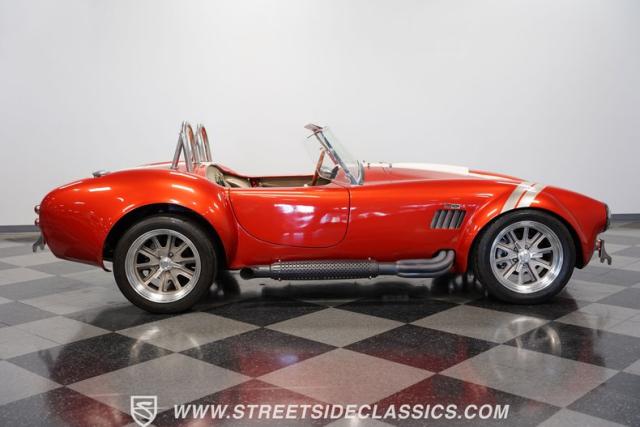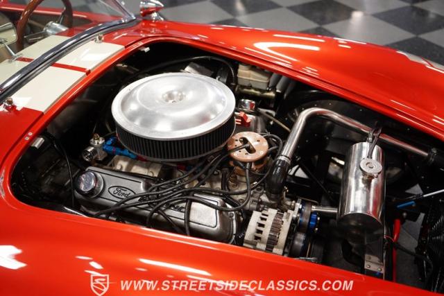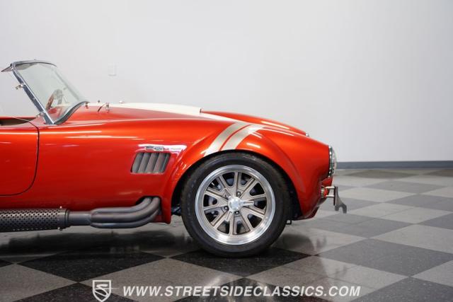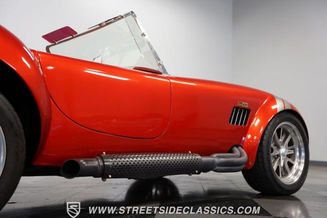 Speaking of fire, this Cobra doesn\'t mess around. It\'s got a Ford 392 stroker V8 growling through those side pipes that\'s way more punch than the originals ever had! That 5-speed manual transmission lets you row through the gears, backed by a 3.46 limited-slip rear axle for serious grip. Coilovers up front and a trailing arm suspension in the rear will handle modern roads without sacrificing that classic Cobra feel. And when you need to slow down, power disc brakes get the job done. With long tube manifolds feeding those side pipes, this Cobra isn\'t just about looks - it\'ll deliver thrills on any backroad.