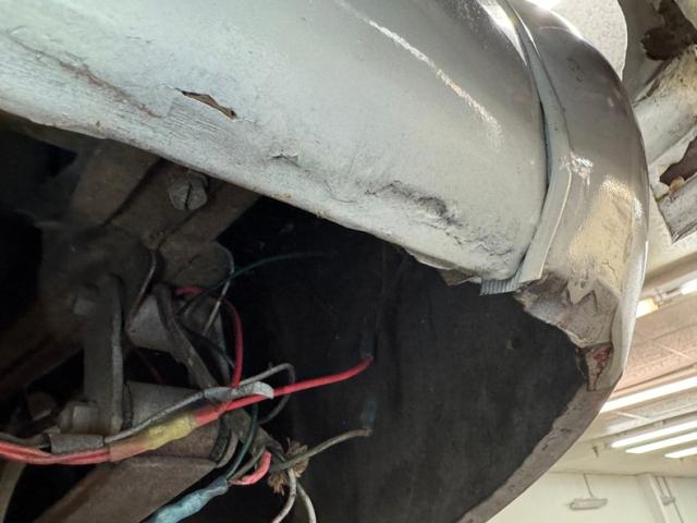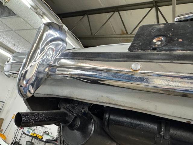 Driver quality, rather than show quality, are the conditions found underneath with typical age induced metal oxidation and some typical surface rust. We note one of the battery trays has invasive rust and the undersides of the doors show pitting. Drum brakes are employed at each of the four wheels, and suspension consists of coil springs in front and leaf springs in back. A single exhaust flows through a stock style muffler on its way to a rear exit.