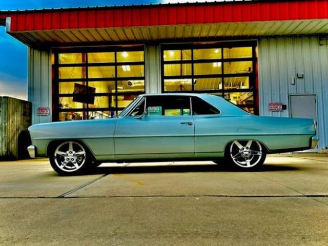 1966 Chevrolet Chevy II Nova Pro Touring Restomod LS This car started out as an all running drivable / original body 37,000 miles. The car was found in an airport hangar in the panhandle of Texas. Extremely dry climate and no rust. The car was like BRAND new then the build started. Complete rotisserie restoration. This is a full frame car. Lots of emphasis on that and a leather interior with suede headliner. The trunk is fully finished out and even the trunk lid is finished out in leather. Car has NO rattles or wind noise when driving down the road. All the leading edges were welded up hood fender, Trunk etc. so all the body lines lined up better than factory. ENGINE/TRANS- All new! This is a new GM LS2 All Aluminum GM LS2 fuel injected engine Approx. 400 HP with 400lbs of torque pump gas factory tune. GM Complete serpentine setup Original harmonic balancer replaced with newer style harmonic balancer and aluminum pulley for upgrade for supercharger pro charger in the future Custom Aluminum radiator -dual electric fans. Condensing coil/dryer overflow fill for radiator. Vintage Air Extreme II/ AC & Heat. Vintage Air switches for heat and air lighted to see at night New Tremec 6 Speed with twin disc clutch. Performance balanced aluminum / polished driveshaft. Custom built stainless steel fuel tank with fuel fill at flip down license plate Electric intake fuel pump Ridged fuel pump lines and return line. The fill location is behind the license plate. The fuel fill location was eliminated from the original rear quarter panel for a cleaner look. No lifting of the trunk to fill the fuel tank! FRAME SUSPENSION Power steering rack and pinion (Wayne Due) Mustang II style front clip which allows wider rim and tire up front. This is not your typical front clip. This is more your front midframe clip