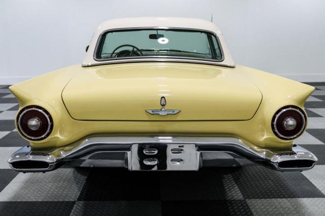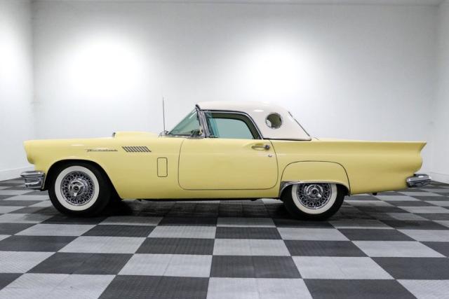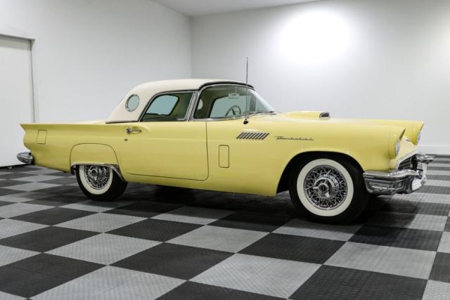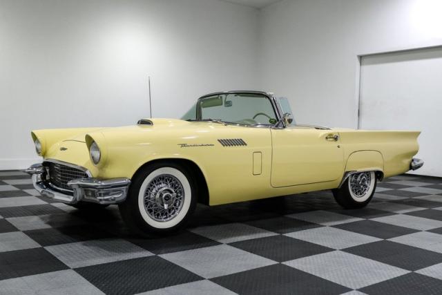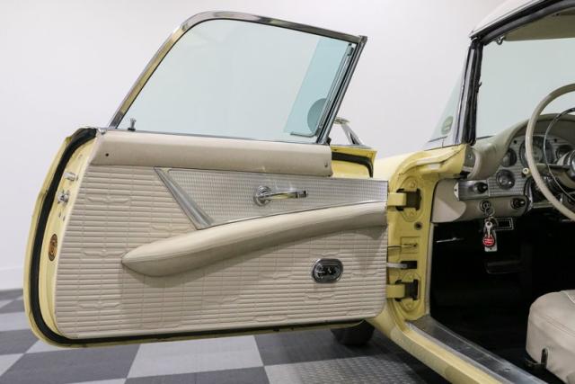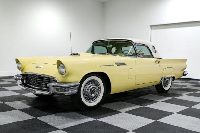 There\'s something about a \'57 Thunderbird that just hits right. Ford had already shaken up the scene in \'55, but by \'57 they had the formula dialed in, blending sport, style, and just enough luxury to make it the boulevard king. This example, finished in a vibrant yellow over a cream interior, captures that final and most refined year of the first-generation T-Bird, a year collectors chase for its improved handling and cleaner design.