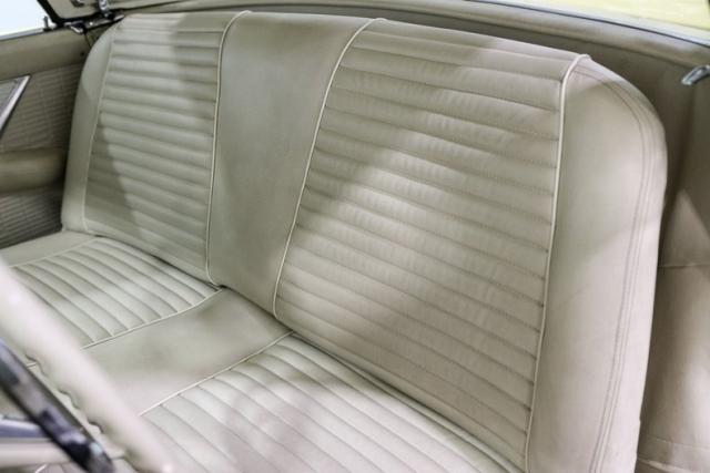 Inside, the cream bench seat keeps things period correct while offering a clean, inviting cabin. The floor shifter adds a sporty touch, reinforcing that this wasn\'t just a personal luxury car, it was Ford\'s answer to the growing demand for performance with style. Even details like the original radio, still in place, remind you of the car\'s authenticity and heritage.
