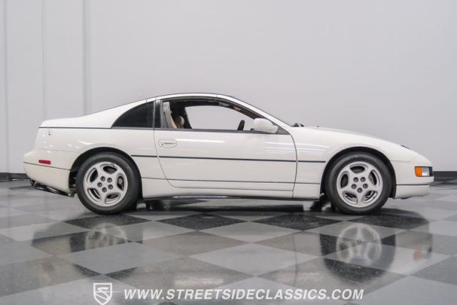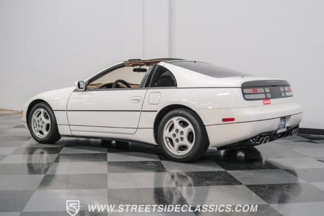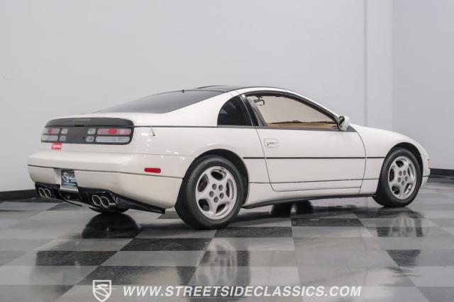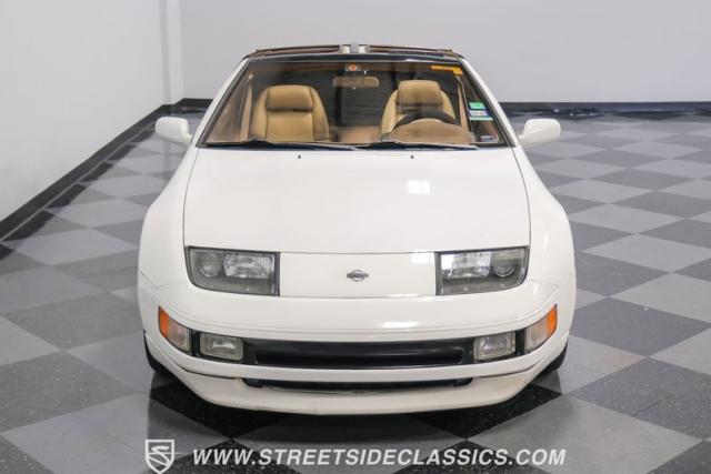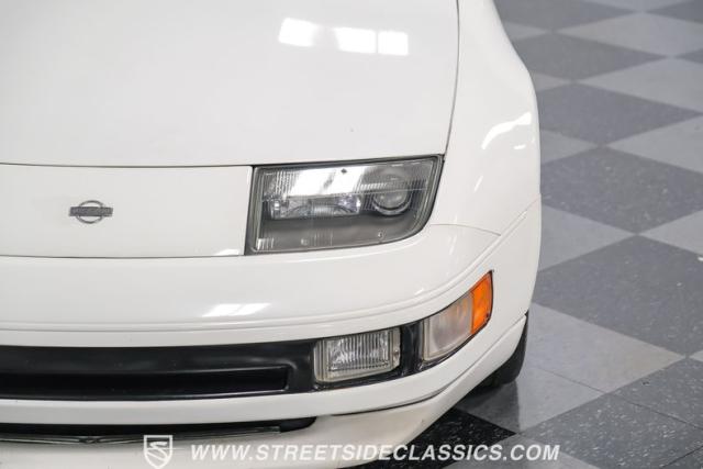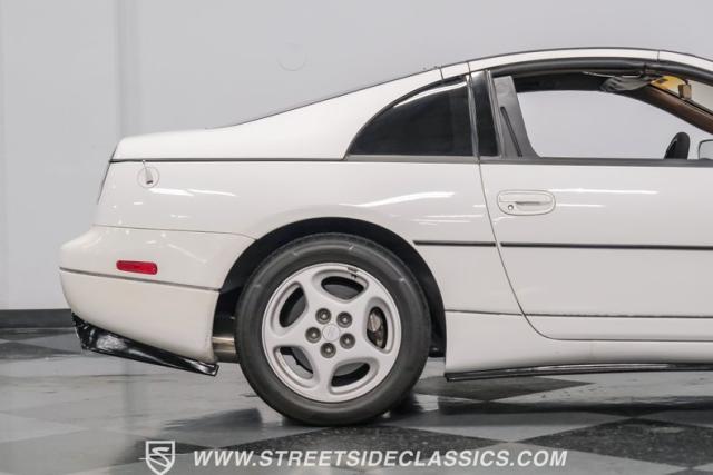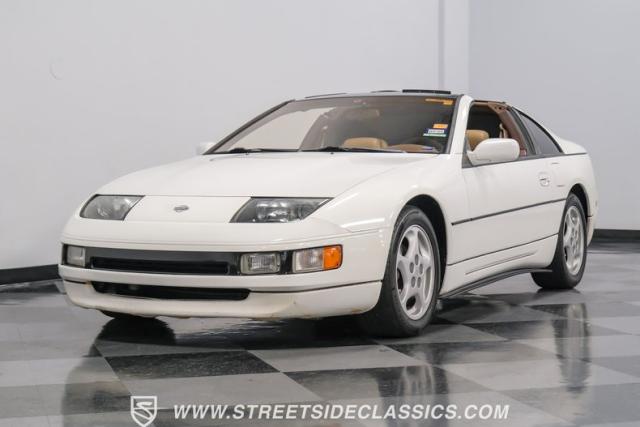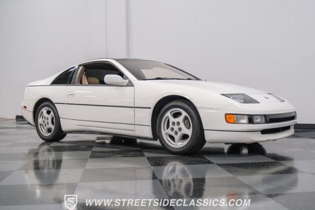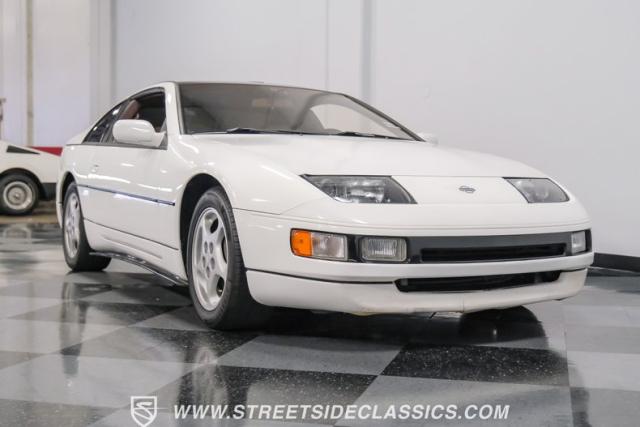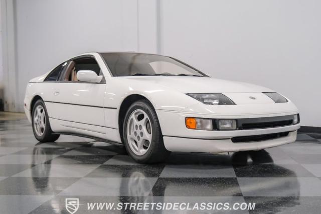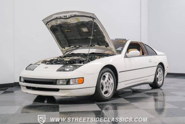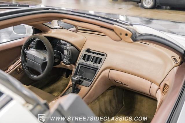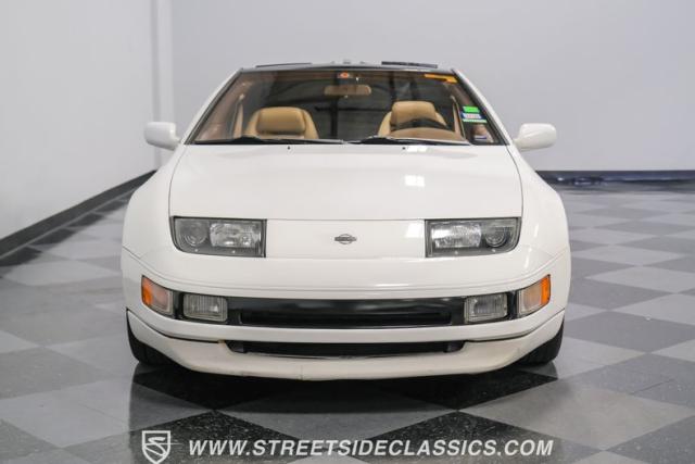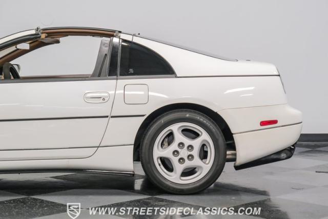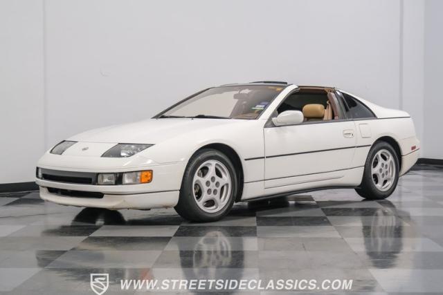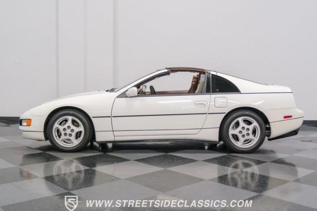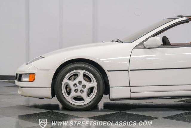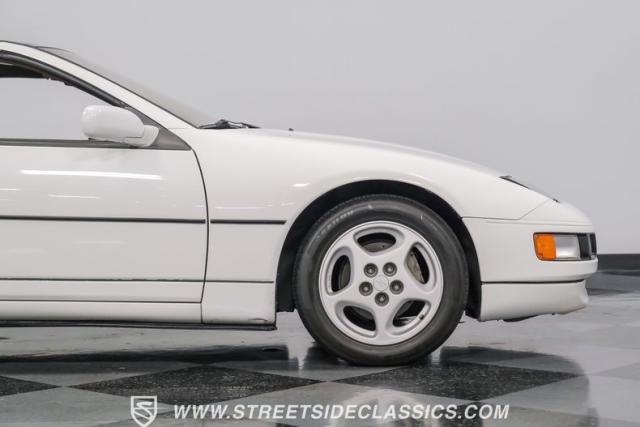 This 1993 Nissan 300ZX, draped in a striking Super White hue, exudes a timeless appeal that\'s hard to miss. The sleek lines of this iconic coupe are accentuated by T-tops, adding a touch of nostalgia and a dash of open-air freedom for those sunny drives. The original panels and paint maintain its authentic charm, while the 16\" stock rims coupled with 225/50R16 tires offer a sturdy stance. The rear panel has been updated with clear lights, providing a subtle yet modern twist to its classic aesthetic.