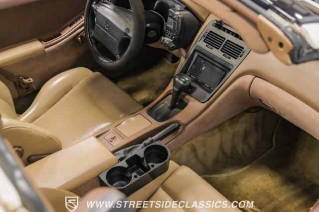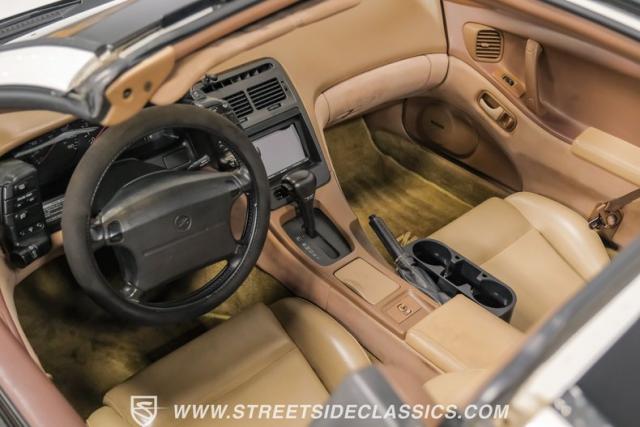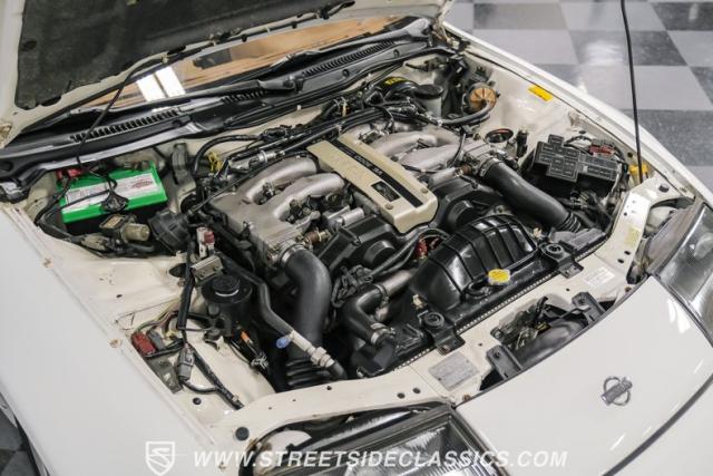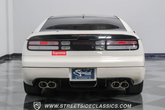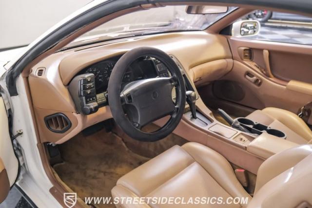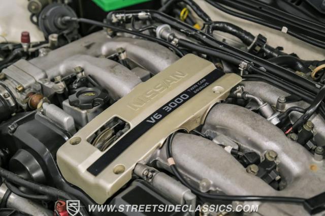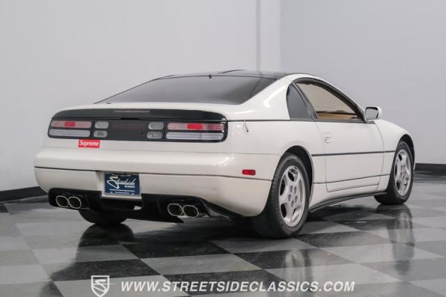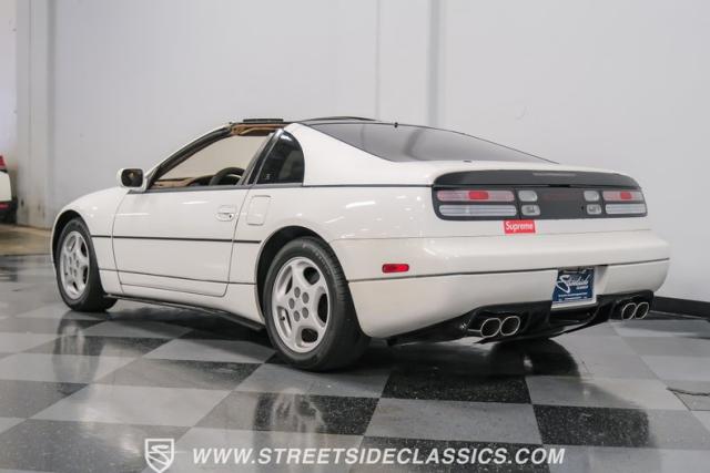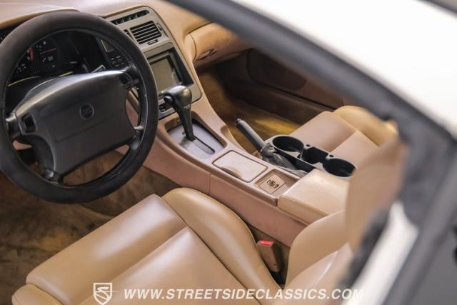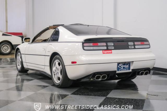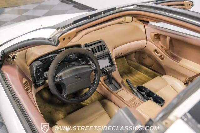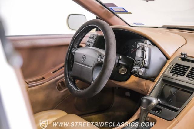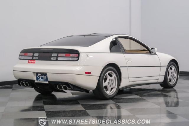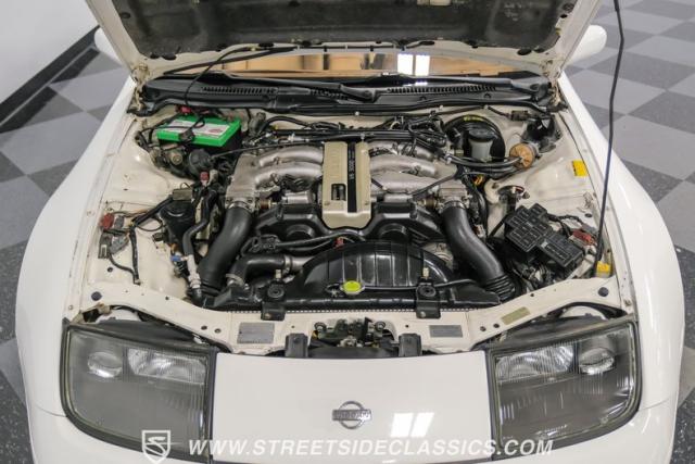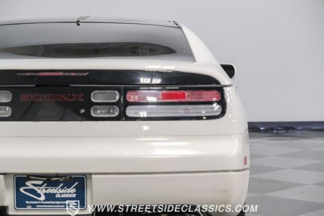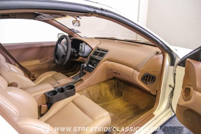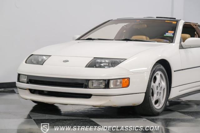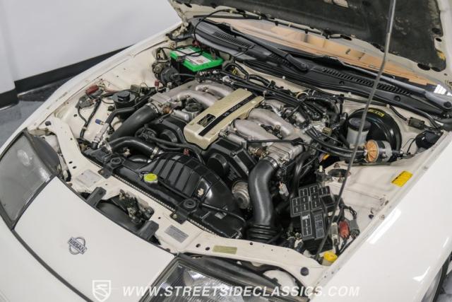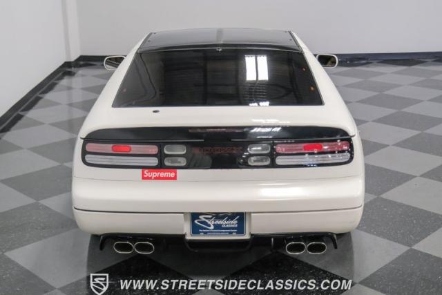 This 1993 Nissan 300ZX, draped in a striking Super White hue, exudes a timeless appeal that\'s hard to miss. The sleek lines of this iconic coupe are accentuated by T-tops, adding a touch of nostalgia and a dash of open-air freedom for those sunny drives. The original panels and paint maintain its authentic charm, while the 16\" stock rims coupled with 225/50R16 tires offer a sturdy stance. The rear panel has been updated with clear lights, providing a subtle yet modern twist to its classic aesthetic.