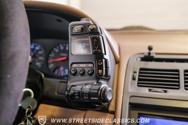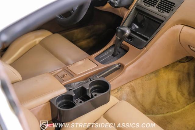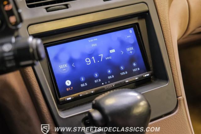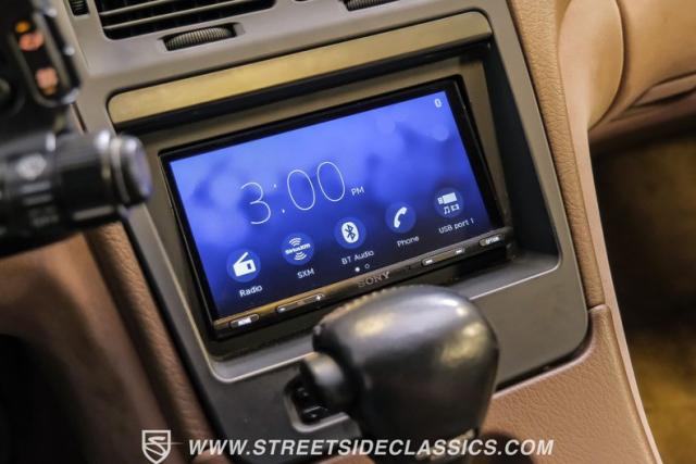 Inside, the tan leather bucket seats provide a comfortable and supportive ride, and they appear almost new, suggesting a recent re-upholstery that complements the car\'s well-preserved interior. The Sony double din AM/FM/SAT/BT/AUX system brings modern convenience to your fingertips, while the tan carpets and door panels maintain the classic vibe. The center console and dash, also in great shape, seamlessly blend functionality with style, making every drive a pleasure. The car\'s interior is further enhanced by the ice-cold air conditioning, ensuring a comfortable environment regardless of the weather.