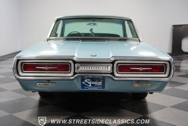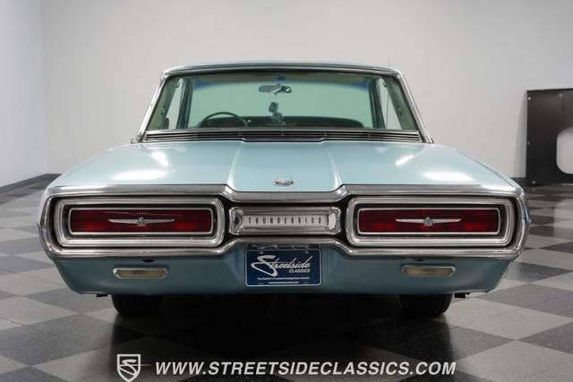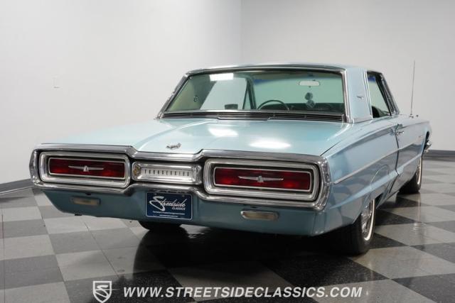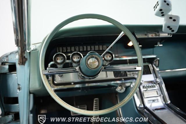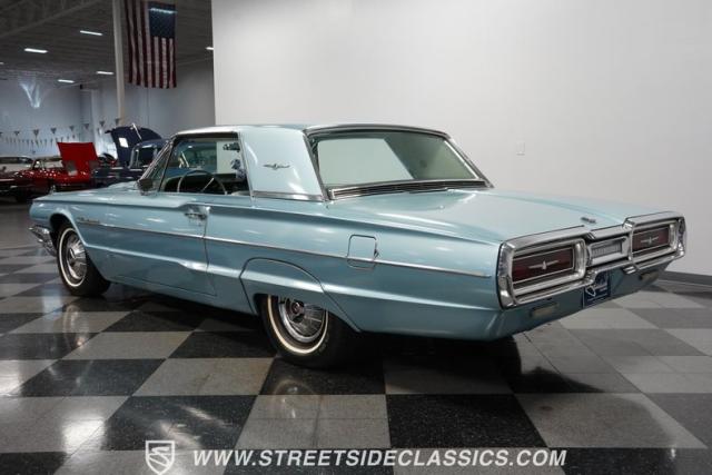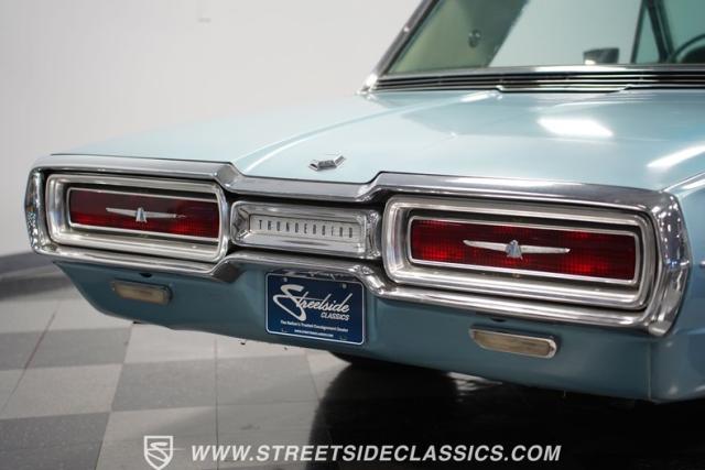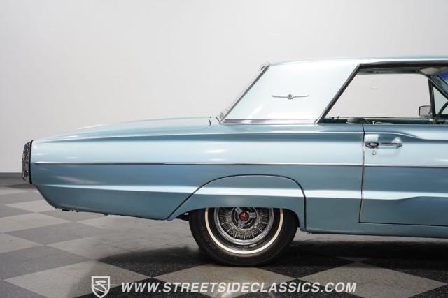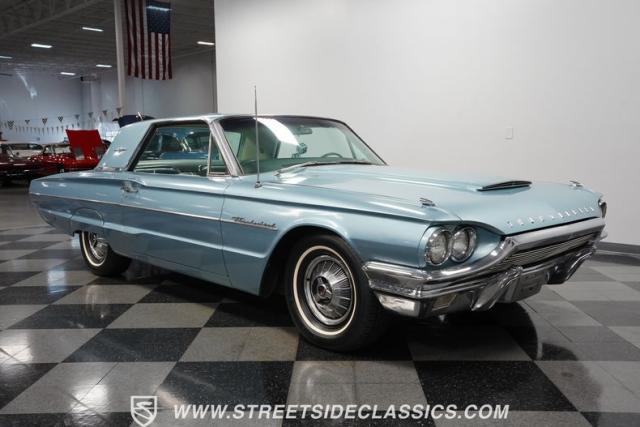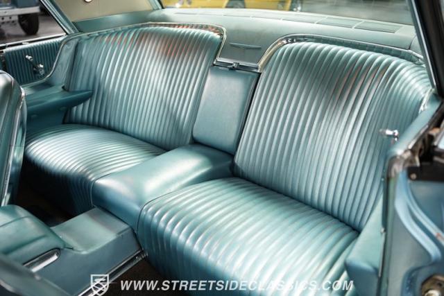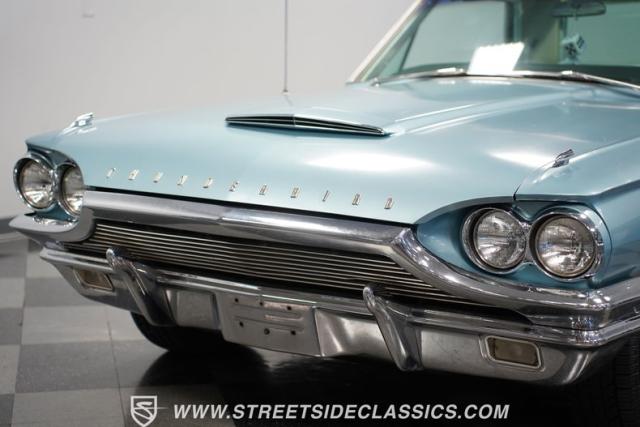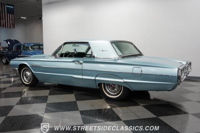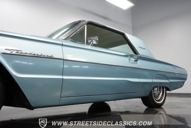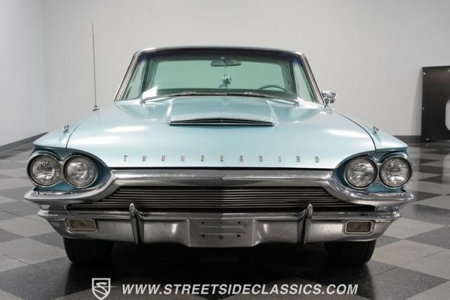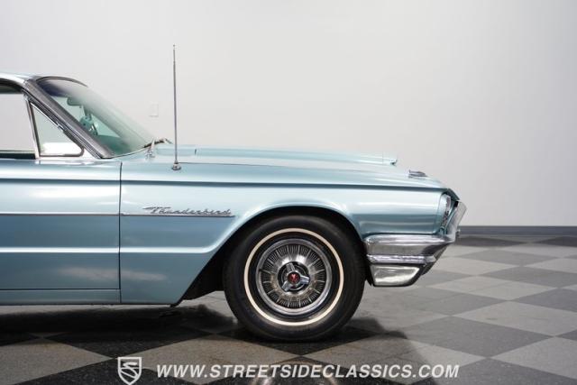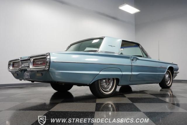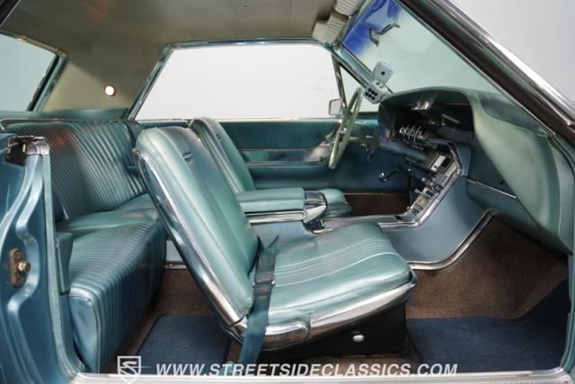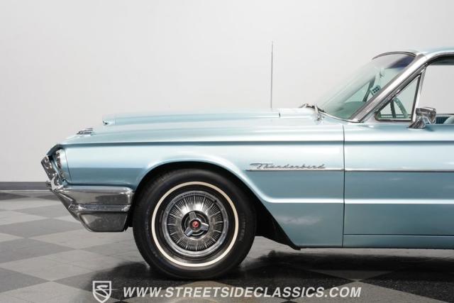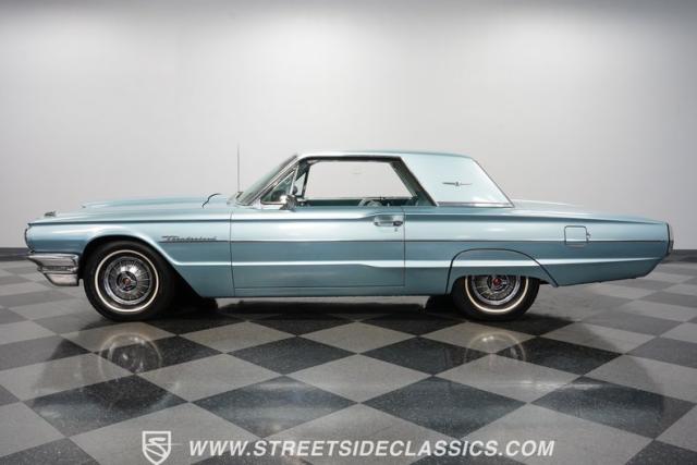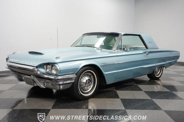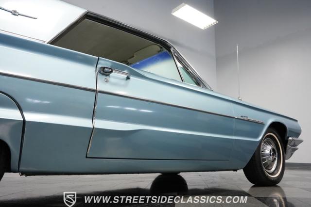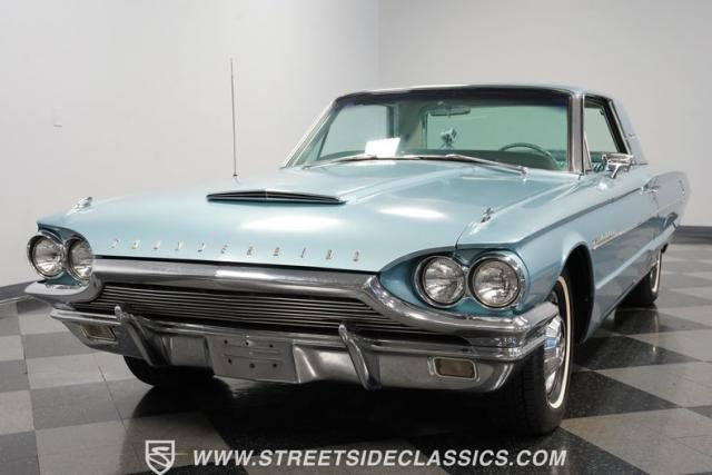 This 1964 Ford Thunderbird channels pure Vegas glamour, a machine built for cruising down The Strip when Sinatra and Martin ruled the town. The Medium Blue Metallic finish perfectly complements the rocket-age styling, where every angle takes inspiration from NASA\'s finest - from the projectile-shaped front end to those jet-thrust taillights. The sleek hardtop profile flows like a sonic boom frozen in metal. Chrome bumpers wrap the body with the same precision as a tuxedo on a Vegas headliner, while 15-inch wheels wearing 235/70R15 tires plant this aerial-inspired ride firmly on terra firma.