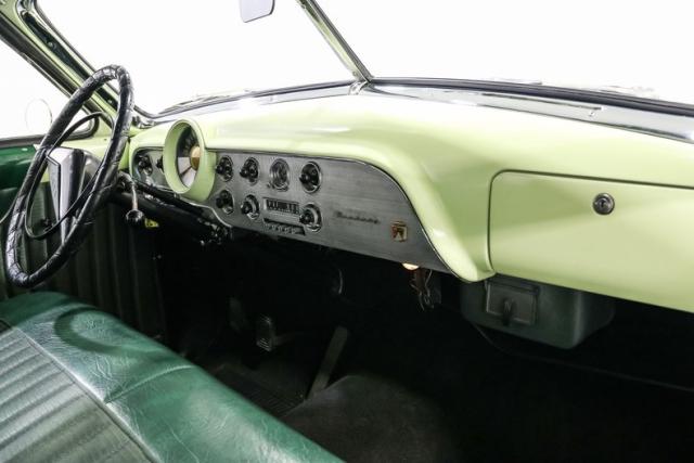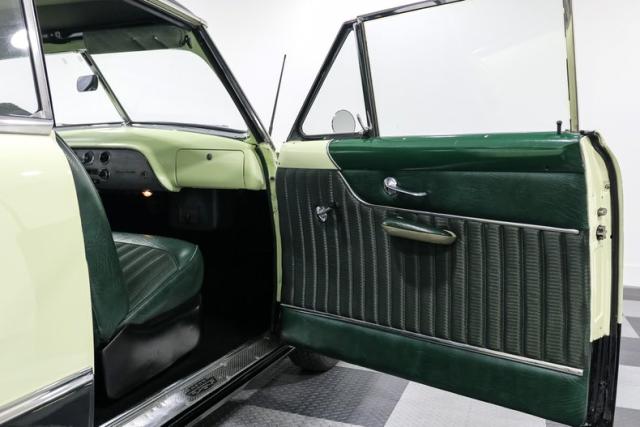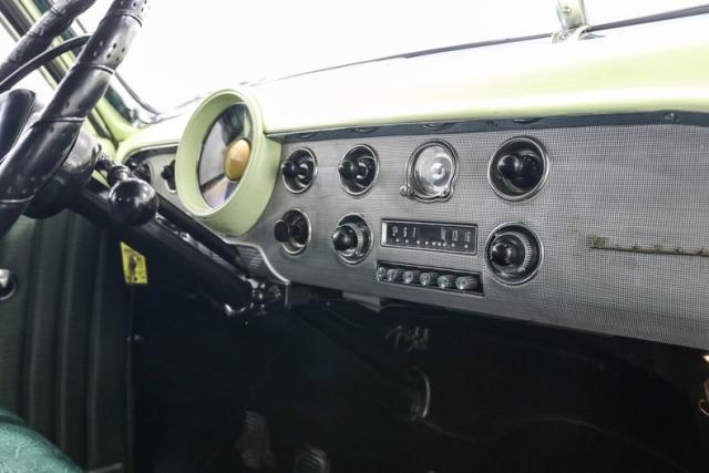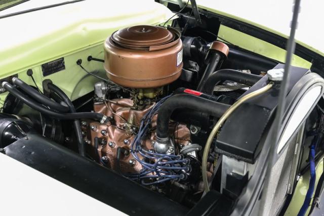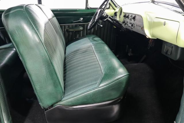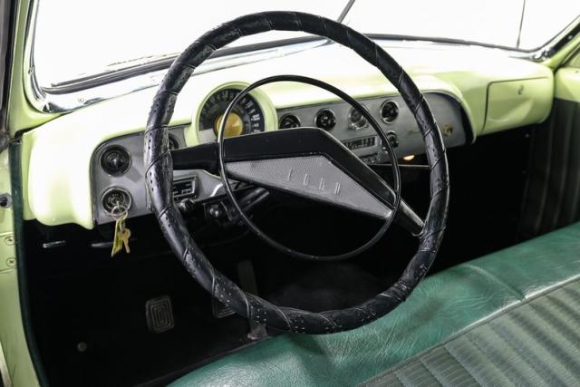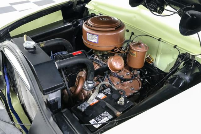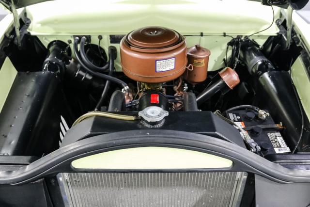 Inside, the car is finished in Green with Mint Mist accents and a custom interior that elevates the original Ford design. A bench seat wrapped in vinyl, a custom headliner, and a carpeted trunk area bring a refined touch. A modified factory radio paired with an aftermarket sound system hides modern convenience behind a vintage face so the cabin never loses its nostalgic charm.