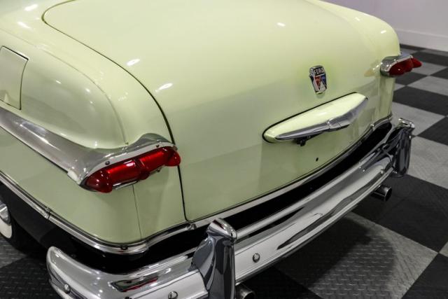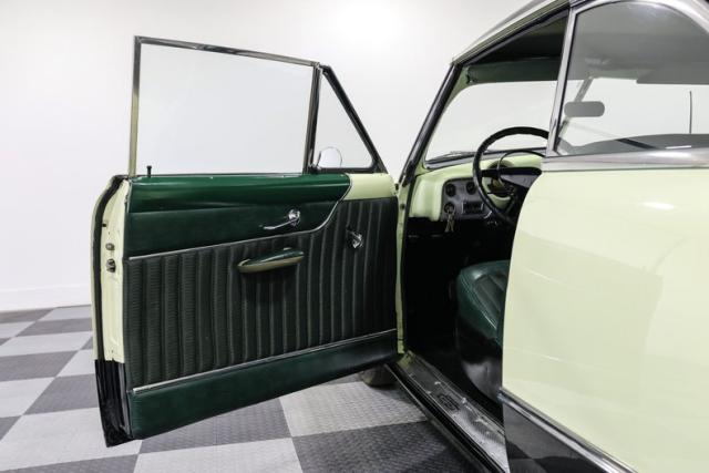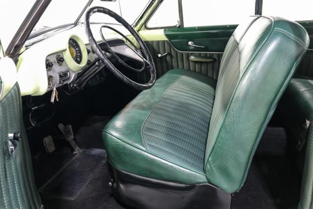 The two tone Mint Green and Black body has the stance and attitude of a proper early fifties cruiser, sitting on wide whitewall tires capped with factory style dog dish hubcaps. Fender skirts tighten up the silhouette and give the car that smooth, rolling-sculpture look that defined the custom movement of the era. Everything about the exterior is designed to echo the classic mild customs that once ruled Saturday night drive-ins.