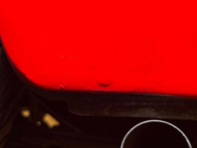 Nice and clean underneath with no surface rust nor much in the way of grease and grime. In fact, we only see some residual oil on the pan and the rest is dry! Dual exhaust enters FlowMaster mufflers before turning to the sides to exit discreetly in front of the rear wheels. Coil springs in front and leaf springs in rear make up the suspension.