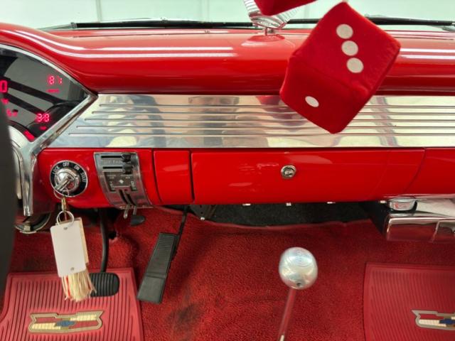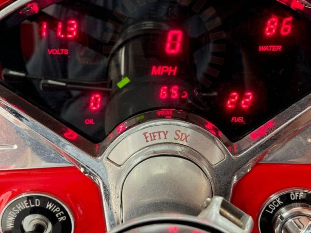 For consignment, a 1956 Chevrolet 150 2 door sedan, a stunner inside and out in red and white, packing a 383ci stroker V8 under the hood and Boyd Coddington wheels on the corners. Whether it\'s cruise nights, car shows, or simply serving as garage art, here\'s a Two-Ten that\'s bound to be a winner. Couple the upgrades with the 653 miles showing on the odometer which are the clicks this Tri-5 has traveled since built, and we have a sure fire winner here in our Hallowed Halls.