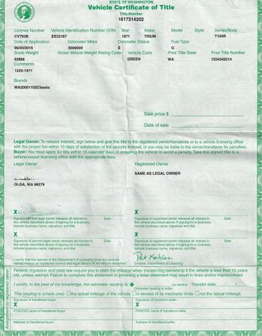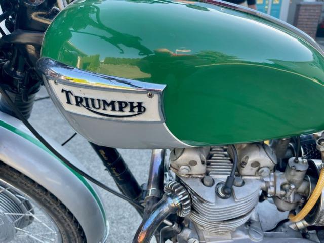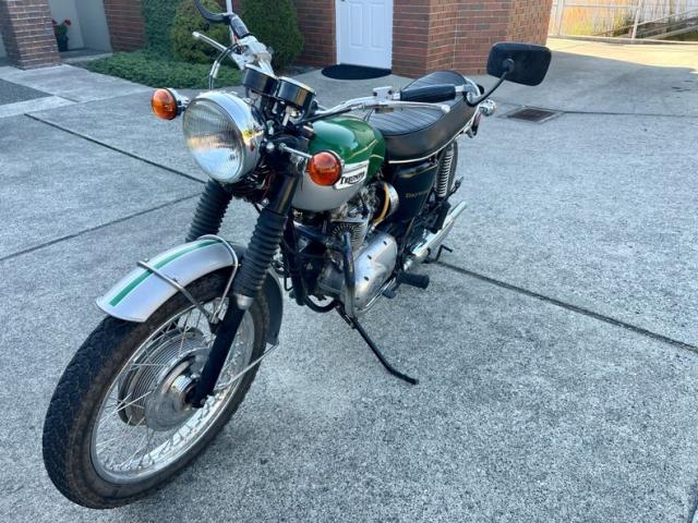1971 Triumph Daytona 500 T 100 R DGM3187 VIN. EE23187. We bought this bike on Orcas Island and Andrew rode it back sightseeing on his way. 3 owner bike. From the seller his comments to us (The bike rides well and I used to use it to commute to work every day (when I didn\'t need a pickup to haul wood). The guy I bought it from on Lopez said a friend had it garaged since the 70s (he bought it from his friend late 90s) with 200 miles on it and that he bought it and put about 2000 on it (just on Lopez Island). I put the rest of the miles on since. I have had it for 6 years and have never had any issue with the way it runs. I had it garaged for the last 2 years because I was building my house, and when I added fuel this Spring, it started right up first kick and I rode it over to San Juan and spent 6 hours over there riding around and back. I have always drained the gas before storage and cleaned and retuned the carbs, plus change the oil every year.) Andrew had a great ride and says the Triumph ran and rode very well. It\'s a good looking bike. Has bar end mirrors. Ethanol free gas. The speedometer shows 6,923 miles and I believe that is probably actual miles but know way of proving it so selling as unknown miles. Recent new tires. Great for vintage riding.
