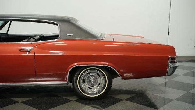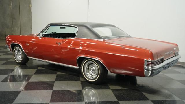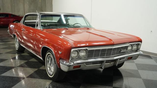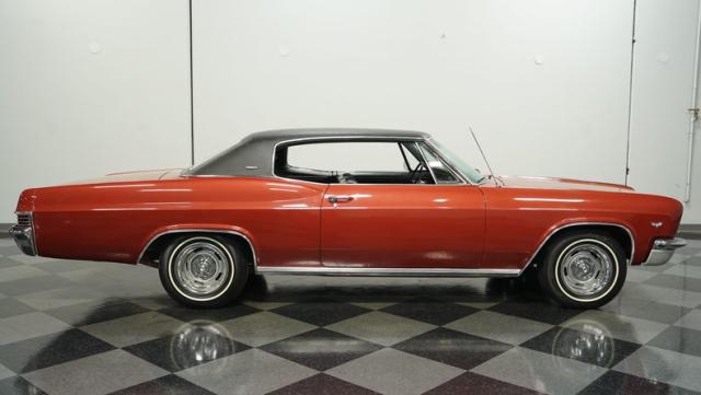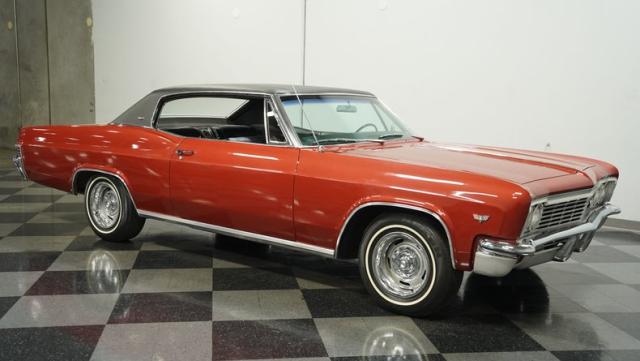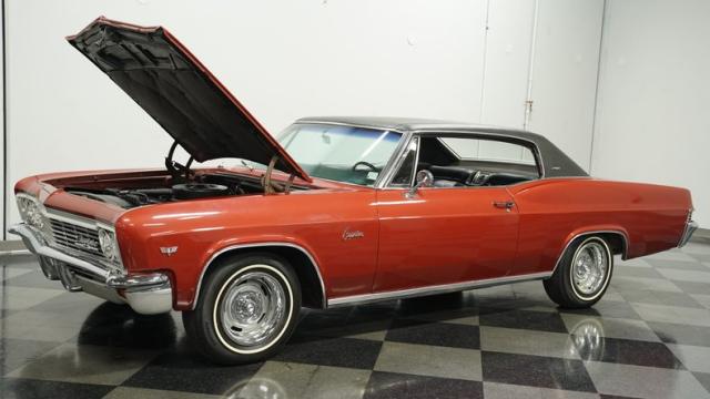 Although its reputation changed somewhat in later years, when the Chevy Caprice rolled off the assembly line for the first time in 1966, it took its place as the top-of-the-line full-sized offering from General. This 1966 Chevrolet Caprice comes to us as a sporty two-door hardtop fully repainted in its original Aztec Bronze color, complemented by its black vinyl roof. Inside, we find a pleasantly appointed interior highlighted by black vinyl and cloth bench seating in both the front and rear. Red floormats add a splash of color to the black carpet and woodgrain-trimmed dashboard.