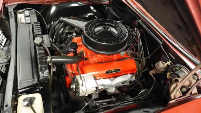 Under the hood sits Chevy\'s venerable 283 cubic-inch V-8, which is backed by a three-on-the-tree three-speed manual transmission with overdrive. That powertrain rides on a front suspension consisting of coil springs, shocks, and a sway bar, while a set of coil springs and shocks hold up the rear. Fifteen-inch Rallye wheels wrapped in 225/70R-15 Nexen rubber handle traction, while drum brakes deal with scrubbing off speed.