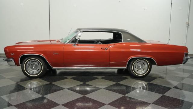 This 1966 Chevrolet Caprice\'s interior keeps true to its roots, but thankfully it also has an additional Bluetooth CD player mounted under its console to allow for more soundtrack options than the car\'s original radio (which is still intact). Also included with the sale is the original owner\'s manual to help transport you back in time. If you\'re looking for a unique two-door hardtop that has some true historical significance as the very first year of the Caprice, then look no further. Call today!