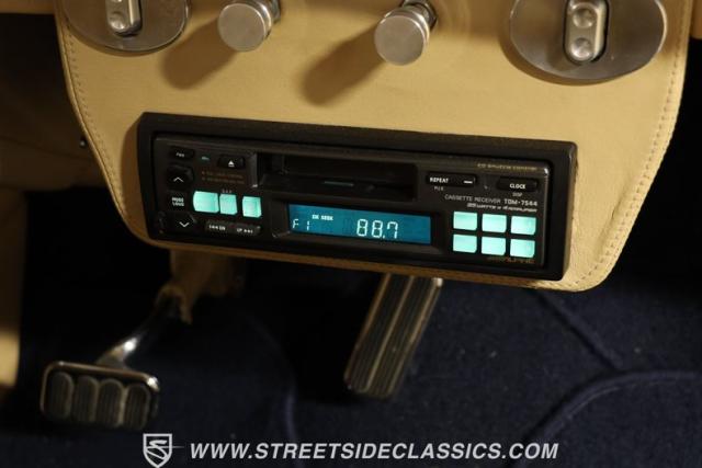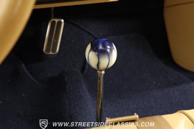 There\'s a lot to like about the accompanying interior. With its tan vinyl upholstery, tight, well-fitted door panels, and clean contrasting carpeting, this is a really nice driving environment. An aftermarket Budnik steering wheel sits on a tilt steering column, allowing you to arrive at the perfect driving position, and just in front of it, there\'s a collection of Auto Meter gauges sitting inside a nicely contoured instrument panel. An Alpine AM/FM/Cassette stereo sits at the center of the dash, teaming with a CD changer mounted in the trunk, to provide you with plenty of audio options. The removable cabriolet hardtop also makes this vintage Ford a viable driving option in less forgiving weather, and it fits nicely to keep the elements at bay.