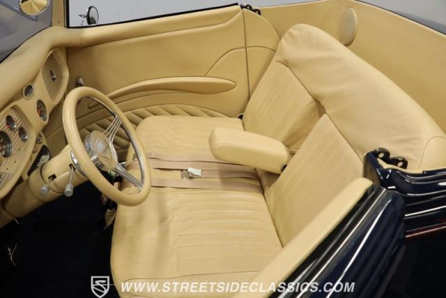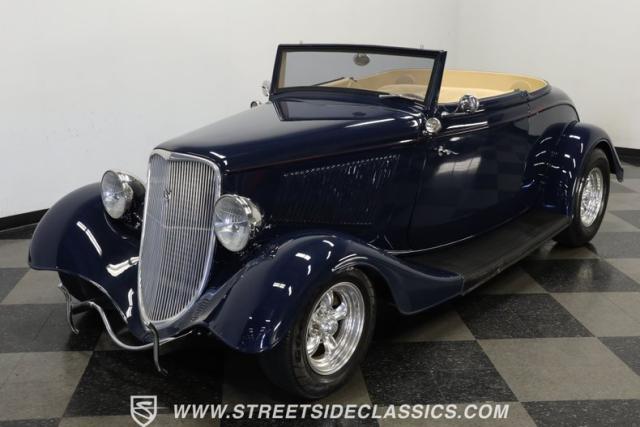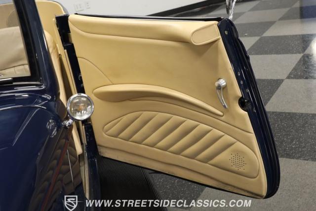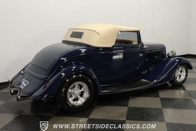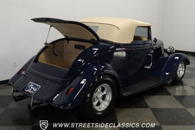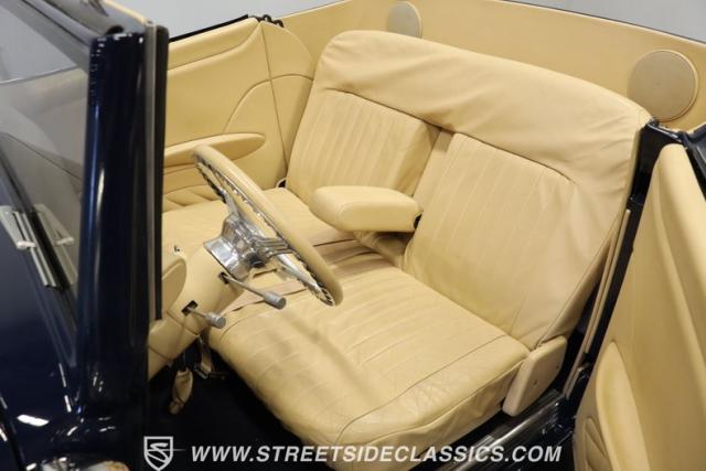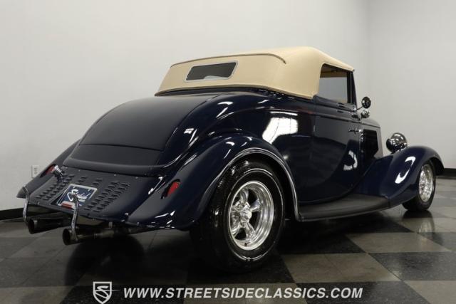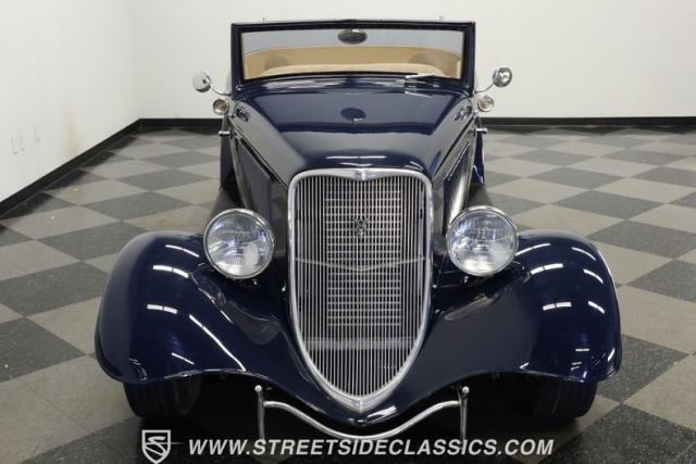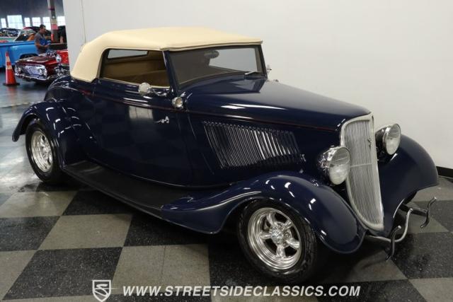 That sculpted front grille sitting between a pair of flared, tapered fenders. Those intricate engine vents. The husky form culminating in an aggressively sloped deck lid. With so much effortless style in one place, it\'s easy to see why this 1933 Ford Cabriolet makes for such a compelling foundation to build on. This is a great-looking cruiser, dressed in deep blue paint that holds a nice shine. And, where some circa \'30s projects put the emphasis almost solely on aesthetics, this one features a collection of mechanical upgrades that make it a fine driver as well. Because it has only logged a little over 5,000 miles since being built, this open-air Ford should be well-positioned to offer many future miles of driving happiness.