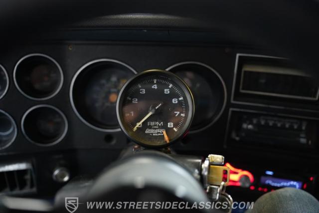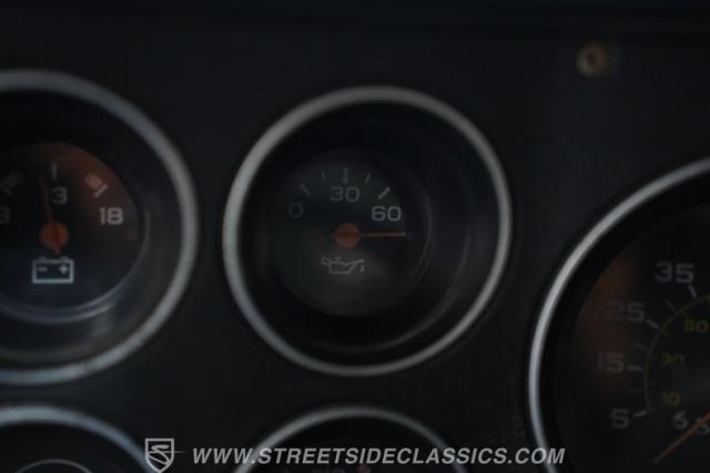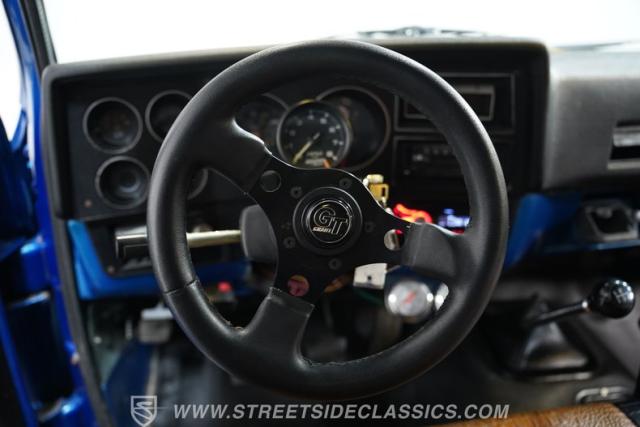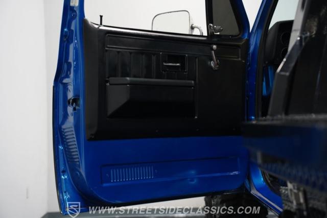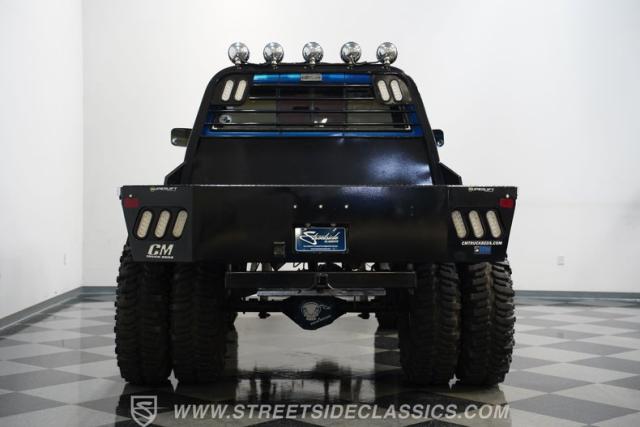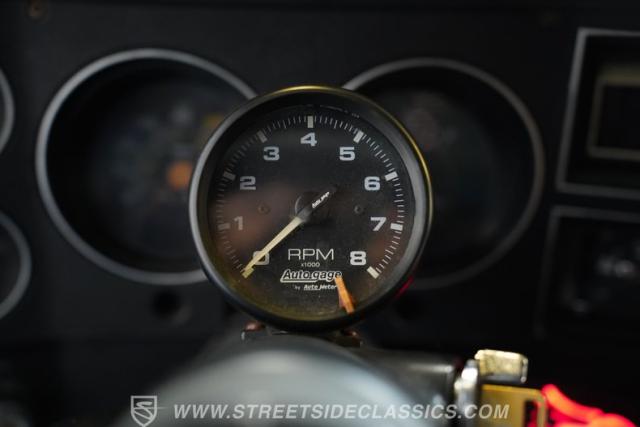 If you can get high enough to see under the hood, you\'ll find a 350 cubic-inch V8 with an Edelbrock AVS2 1908 4-barrel carburetor. This V8 is connected to an SM456 4-speed manual transmission that runs a Dana 60 rear axle and, when needed, engages a Dana 44 front axle. Both the front and rear rely on leaf springs and shocks for suspension duties, while 17-inch wheels are wrapped in 42.13.50-17LT TSL Bogger Super Swampers for traction. Stopping this massive custom truck are front power disc brakes and rear power drum brakes. And for the deep, throaty sound this truck obviously deserves, there are long-tube headers connected to dual exhaust and Flowmaster mufflers.