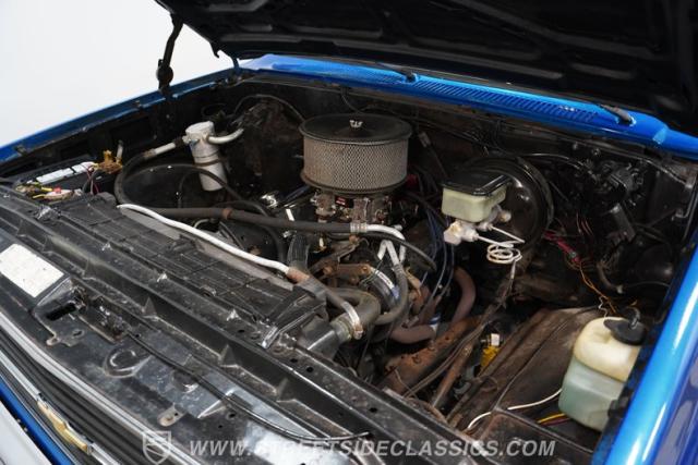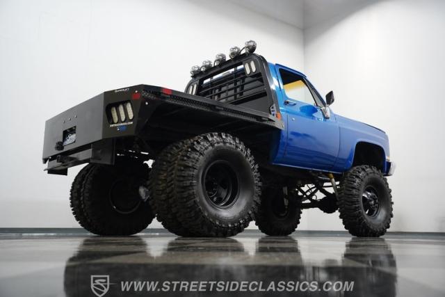 If you ever wanted or needed a monster to drive, here is your chance. This is a 1984 Chevrolet K10 4X4 Dually. Note that Chevrolet never built a short-bed dually from the factory, so this is fully custom. The gooseneck hitch in the rear is for serious heavy towing, and the 810-inch lift with 42 -inch tall tires means you can go and tow whatever you want, wherever you want. The Bright Blue paint job looks bold and flashy, while the front grille still retains its original look. Five KC fog lights atop the Chevy help you see through whatever madness you encounter, while LED rear taillights ensure you\'re visible at night from behind.