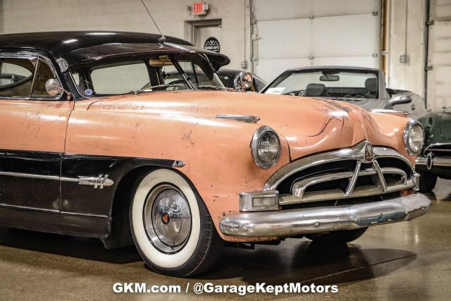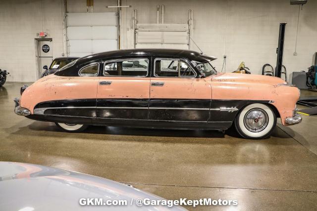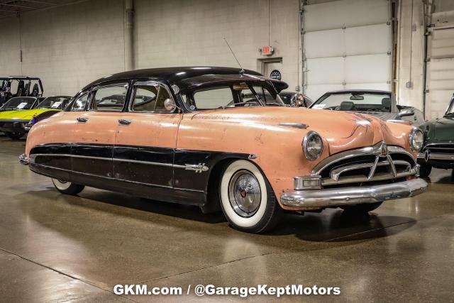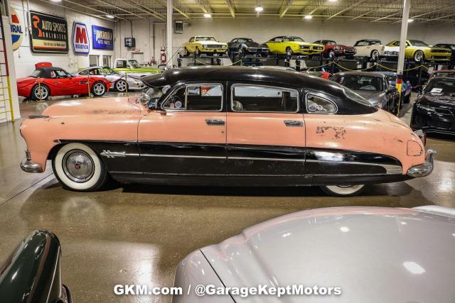 1951 Hudson Hornet- Originally Modified in 1958- Stored In 1960 Until 2011- Restored In 2018- 1956 308ci Inline 6- 262 Head- Mild Cam- Twin Intake- Clifford Headers And New Exhaust- Pink and Black Exterior- Original White InteriorFeatured here is a 1951 Hudson Hornet that is an amazing barn find and a true time capsule of the car culture of the 1950\'s. This car was originally modified in 1958 and two years later was put into storage in 1960. Emerging from a 51-year slumber in 2011 this classic cruiser went through a mechanical restoration with meticulous care and attention to preserve this car\'s appearance in its as-found condition. The pink and black two-tone paint is a classic 50\'s color combination on this four-door Hudson. The finish is unrestored representing the condition it was in when pulled from storage and preserved. The hand-painted pinstripe throughout the body is a classic touch and compliments the base paint job. The chrome bumpers and related trim are all original showing pitting and are rich in patina. The trunk compartment is unrestored featuring the original rubber floor mat with the spare tire and jack tools all present. The trunk floor is well preserved no doubt due to the rubber coating applied 60-some years ago keeping the metal free of any rust-through. The front windshield visor and stainless side-window visors with the driver\'s side-mounted searchlight are classic 50\'s era owner add-ons. In the case of this Hornet these subtle touches accentuate the sleek body lines and the lowered stance on this classic. Opening the doors on this Hudson is like opening a portal to the past that takes you back to a time when dashboards were pieces of art adorned in chrome and ivory. The interior is all original and has simply been cleaned. The original upholstery is present and in good condition showing some light wear but no rips or tears. The seat insert fabric and door panels as well as the rear grab rail are great examples of the formal quality of car interiors that was so rich during this time period. The dash cluster has a heavy Art Deco influence with an oversized speedometer and clock framing fuel and temperature gauges and oil and amp indicator lights and plenty of chrome accouterments. The Motorola AM radio is still present and looking at it you can almost hear the classic doo-whoop music coming from the speaker. Under the hood the original engine was replaced with a larger 1956 Hudson 308cid inline 6-cylinder with a 262 cylinder head and the powerplant was gone through during the restoration process. Era-correct performance upgrades include a mild camshaft Hudson dual carburetor intake and Clifford Performance header that flows into a new exhaust with a glass-packed bullet-style muffler. Power is transferred through a column-shifted 3-speed manual transmission. Underneath the frame and underbody are unrestored however the frame and floorboards are clean with no signs of any rust-through issues. The lowered stance was accomplished using lowering blocks on the rear leaf springs and lowered front springs with new shocks on all four corners. The brakes have been rebuilt including new lines and rubber hoses. This car is truly amazing in its capturing the car culture of the time and is turn-key ready for cruising to share it with other enthusiasts. Please call if interested or e-mail with specific questions. Thanks for looking.