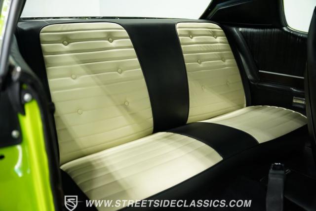 Step inside to a meticulously restored interior that stays true to its roots. The vinyl bucket seats with a center console offer both comfort and a classic vibe, while the woodgrain accents add a touch of vintage elegance. The gauges provide clear visibility, and the AM/FM radio ensures you can enjoy your favorite tunes as you cruise. This interior blends authenticity with slight modern touches, making every drive enjoyable and stylish.