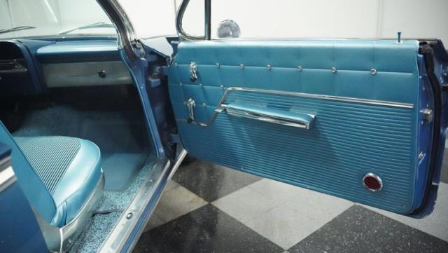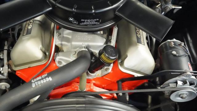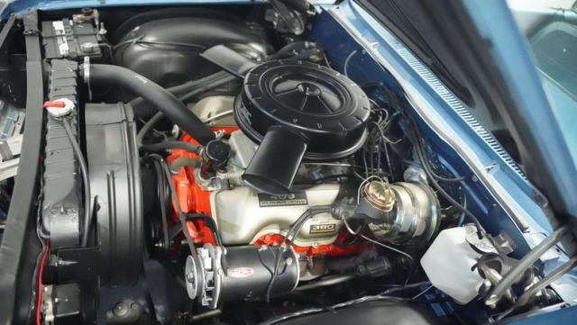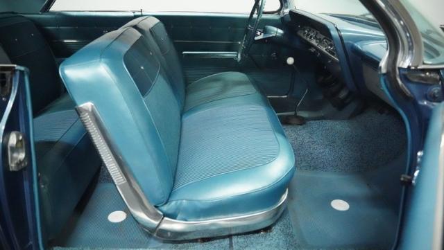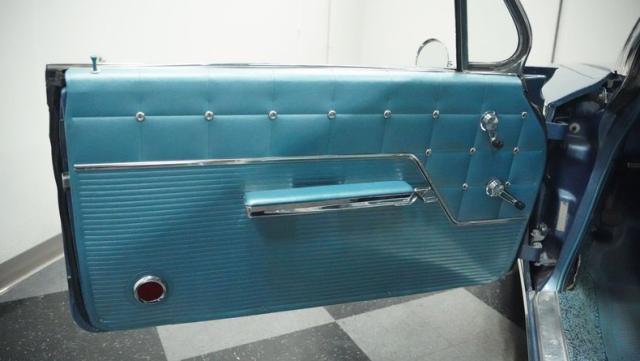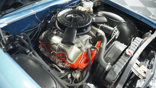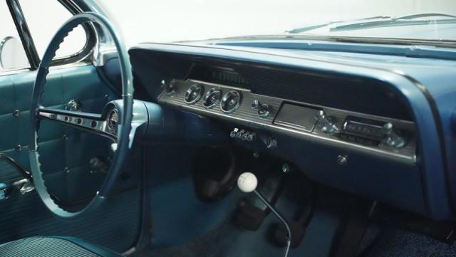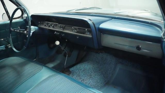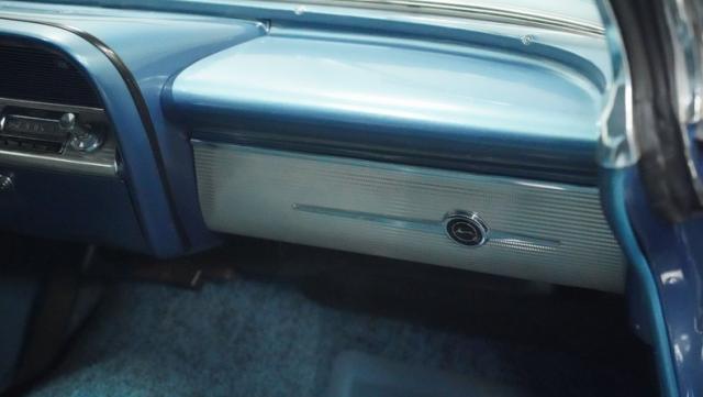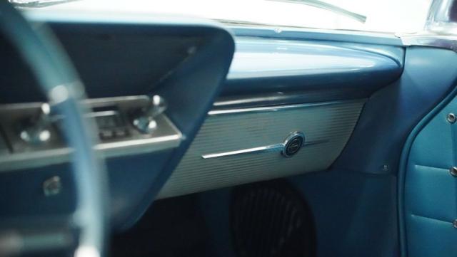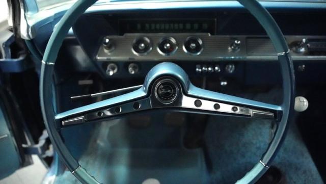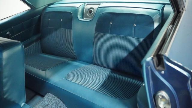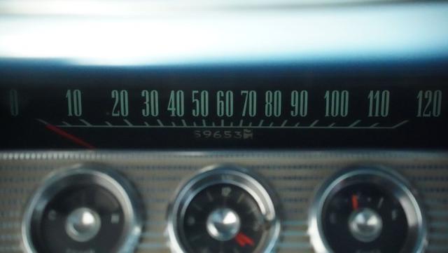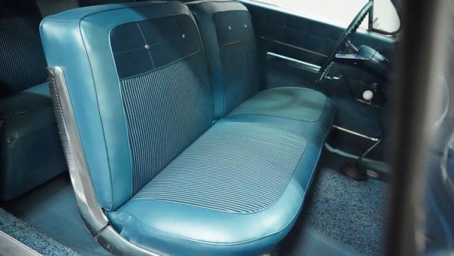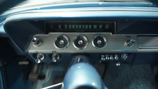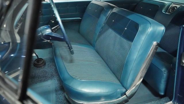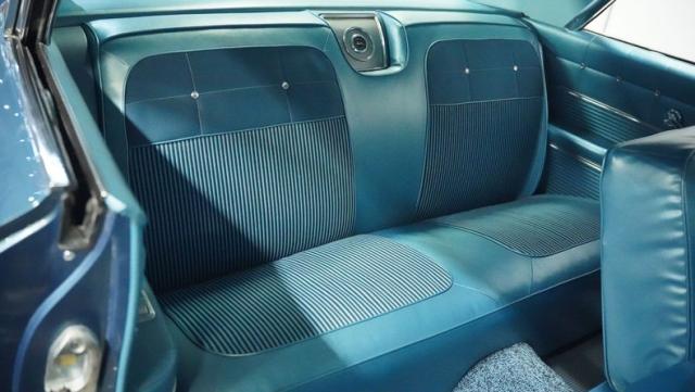 The blue vinyl and cloth interior delivers pure 1960s style. The split bench seat provides ideal positioning behind the floor-mounted shifter. The dash houses crystal-clear gauges that monitor all vital engine functions. An AM radio adds period-correct entertainment. The trunk features correct spatter paint and contains the original quarter regulators, tachometer, and fender skirts.