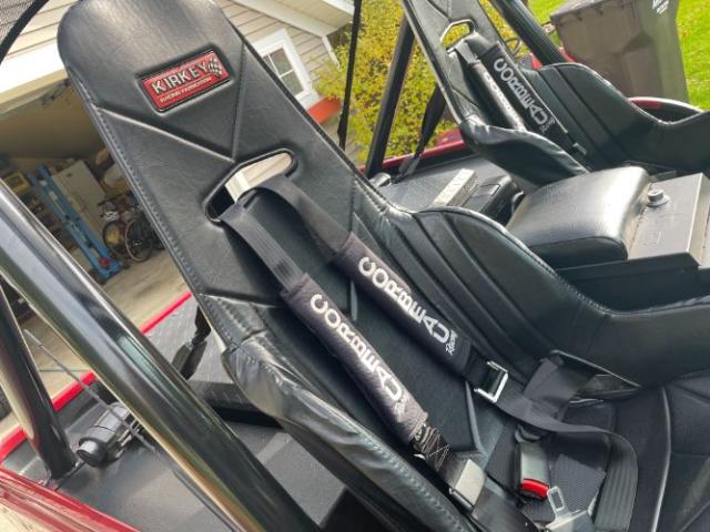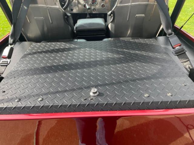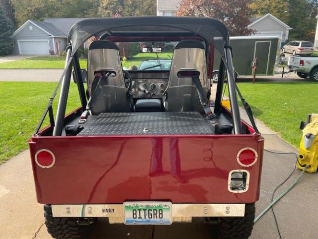 1979 Jeep CJ5 350 cuin Chevy V8 Big valve aluminum heads .480 lift Comp Camshaft with hydraulic lifters Roller rocker arms Ported and polished heads Jet coated headers Ported chrome Edelbrock intake manifold Chrome Edelbrock carburetor New fuel tank with sender , lines and Holly electric fuel pump MSD ignition system Custom aluminum radiator with automatic electric fan Billet specialities chrome alternator Billet specialities chrome water pump and pulleys All new power steering system, pump, lines, gear and gear support Custom Billet specialities aluminum valve covers and wire looms Th 350 transmission rebuilt with racing components and high stall converter B&M Megashifter Dana 20 gear to gear rebuilt transfer case all new gaskets and bearings AMC 20 rear differential with Auburn locker and Moser axles all new brgs & seals Dana 30 front axle with open differential all new brgs, seals, ball joints, and u joints All new brake system front to rear Cooper discoverer STT radial tires on Unique chrome wheels Fiberglass body painted candy red with ghost flames Kirkey racing seats with four point retractable Corbeau harnesss Full custom roll cage tied to the frame Custom side nerf bars Custom stainless dash with gauge pkg Tuffy Locking stereo center console with Jensen stereo system Tuffy locking rear trunk compartment Wizzer bikini top Lots of other customizations to numerous to list Has been in storage for several years due to illness Battery has been replaced and it starts, runs and drives very well ,very fast and fun Engine is leaking some oil Fuel gauge does not work correctly Minor rust hole at lr frame Please Note The Following **Vehicle Location is at our clients home and Not In Cadillac, Michigan. **We do have a showroom with about 25 cars that is by appointment only **Please Call First and talk to one of our reps at 231-468-2809