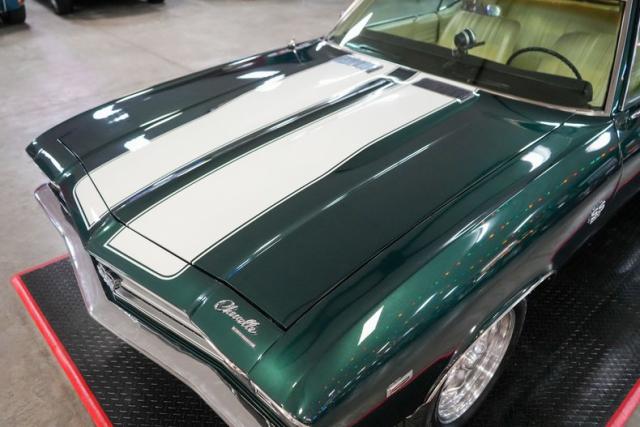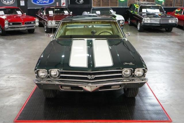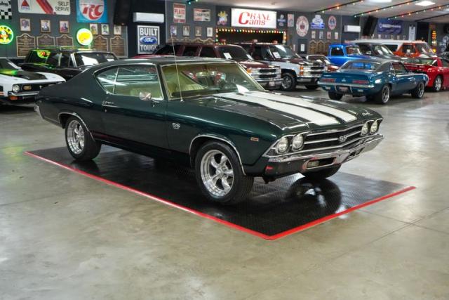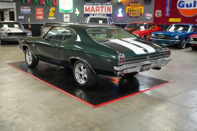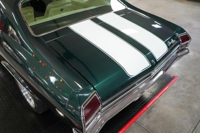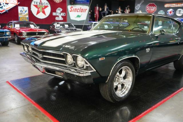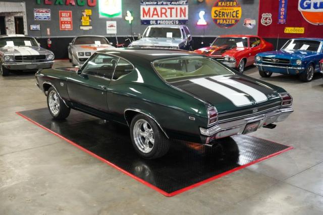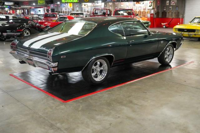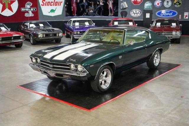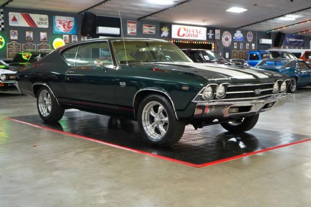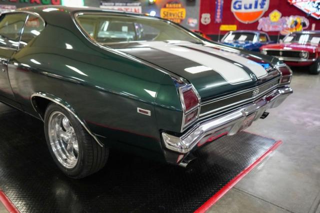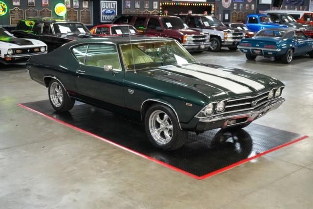 This 1969 Chevrolet Chevelle delivers classic muscle with modern driving confidence. Under the hood is a powerful 396 Big Block Chevy V8 paired with a Muncie 4-speed manual transmission and a stout GM 12-bolt rear end with 3.55 gearing. Equipped with power steering, power brakes, and front disc brakes, it\'s built for both performance and control. The car rides on 17\" American Racing Torq Thrust wheels wrapped in BFGoodrich Advantage tires, while the Edelbrock intake, 600 CFM carb, and MSD HEI ignition boost performance. Finished in Green with White Stripes, this Chevelle combines iconic style with raw power. THIS VEHICLE QUALIFIES FOR FREE SHIPPING AND A WARRANTY!!