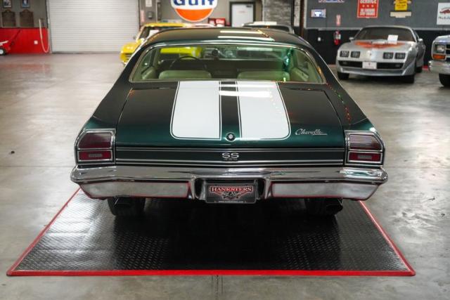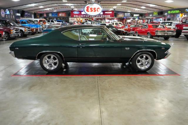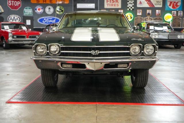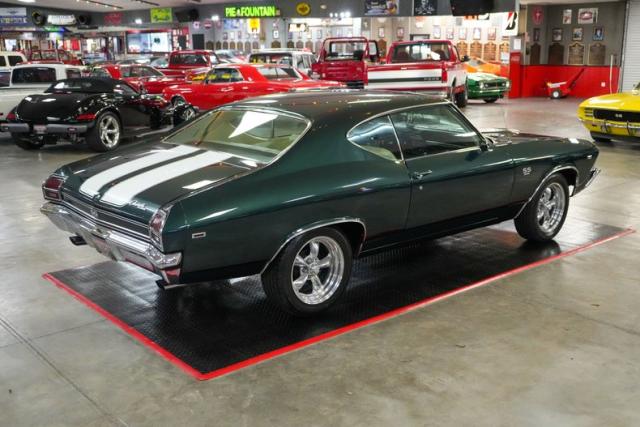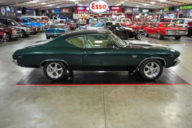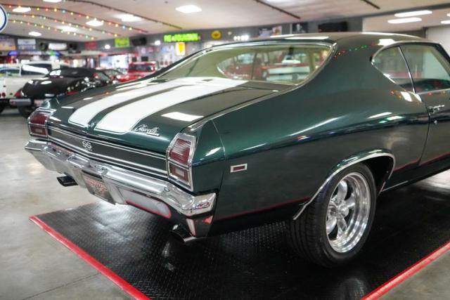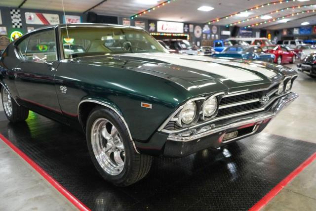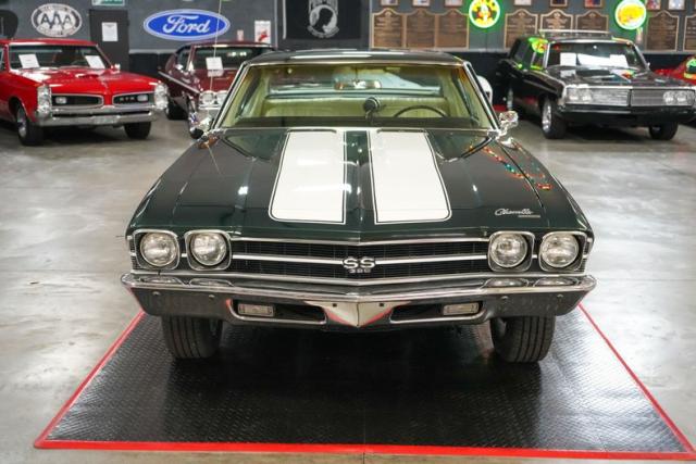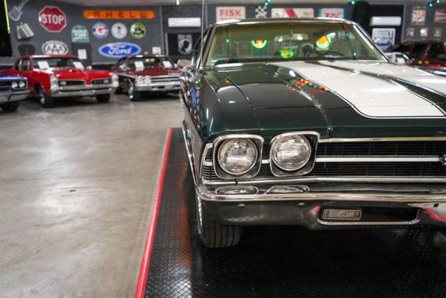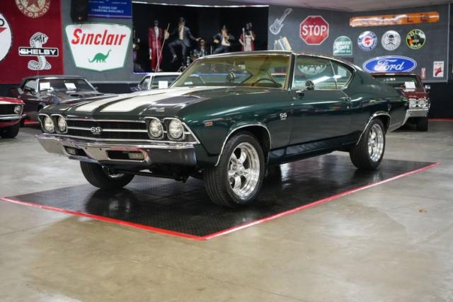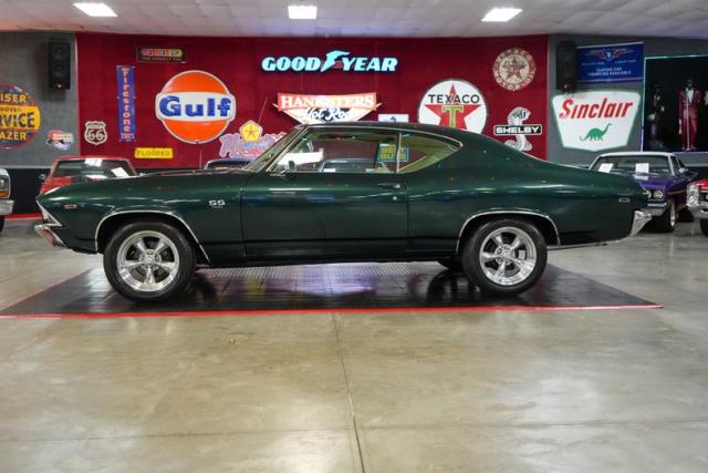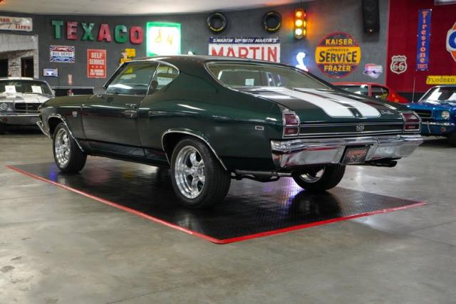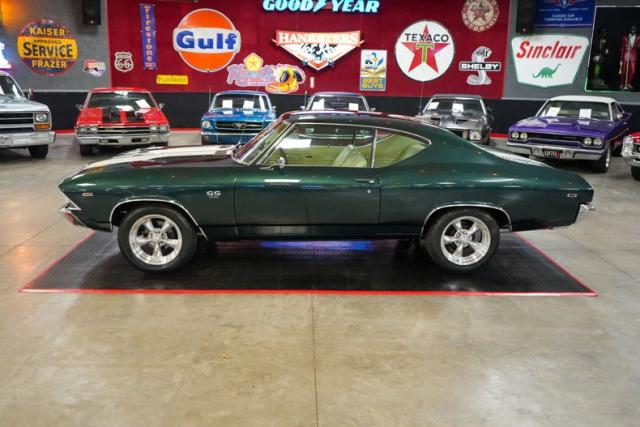 This 1969 Chevrolet Chevelle delivers classic muscle with modern driving confidence. Under the hood is a powerful 396 Big Block Chevy V8 paired with a Muncie 4-speed manual transmission and a stout GM 12-bolt rear end with 3.55 gearing. Equipped with power steering, power brakes, and front disc brakes, it\'s built for both performance and control. The car rides on 17\" American Racing Torq Thrust wheels wrapped in BFGoodrich Advantage tires, while the Edelbrock intake, 600 CFM carb, and MSD HEI ignition boost performance. Finished in Green with White Stripes, this Chevelle combines iconic style with raw power. THIS VEHICLE QUALIFIES FOR FREE SHIPPING AND A WARRANTY!!