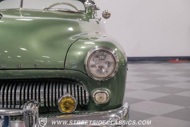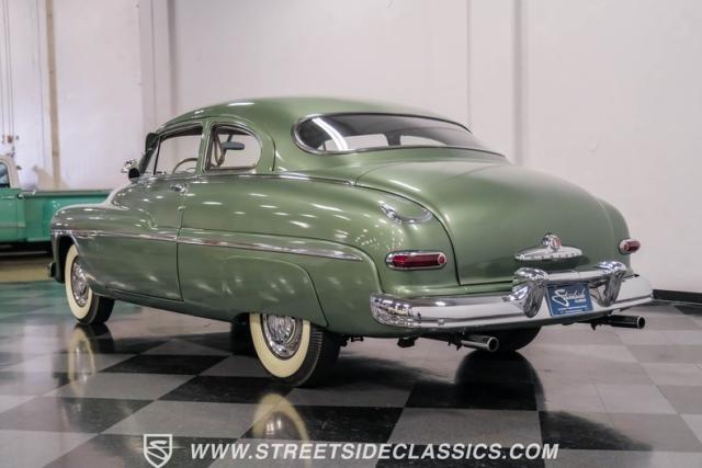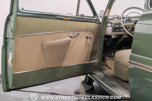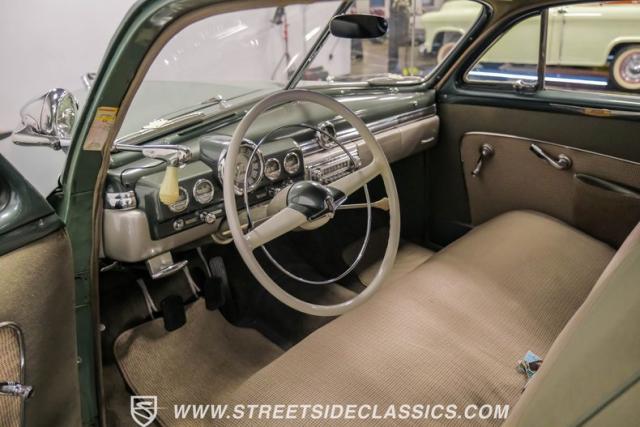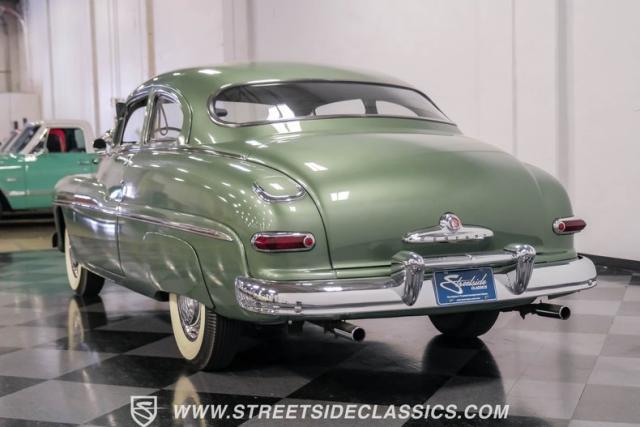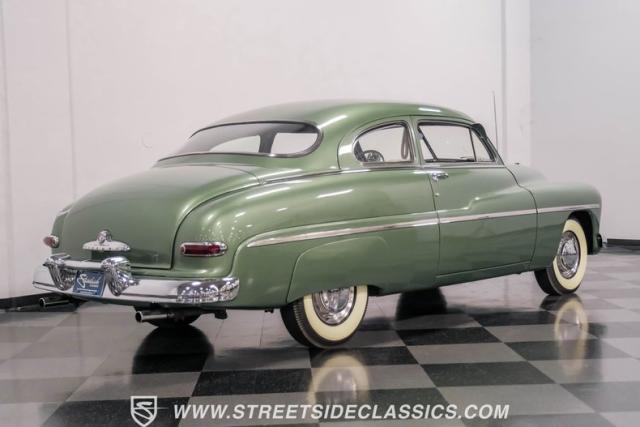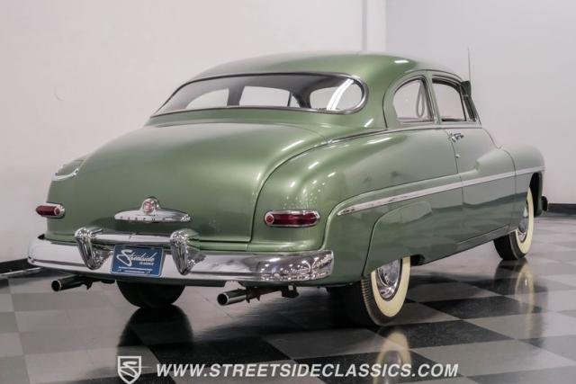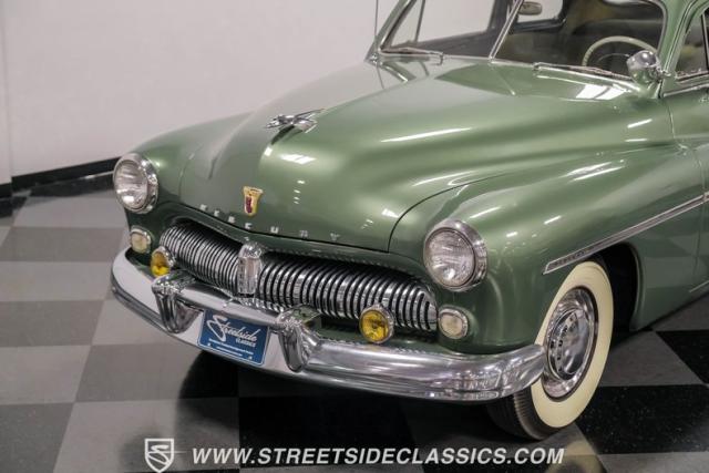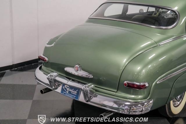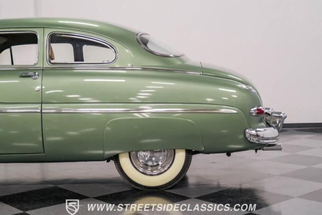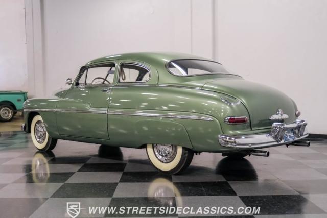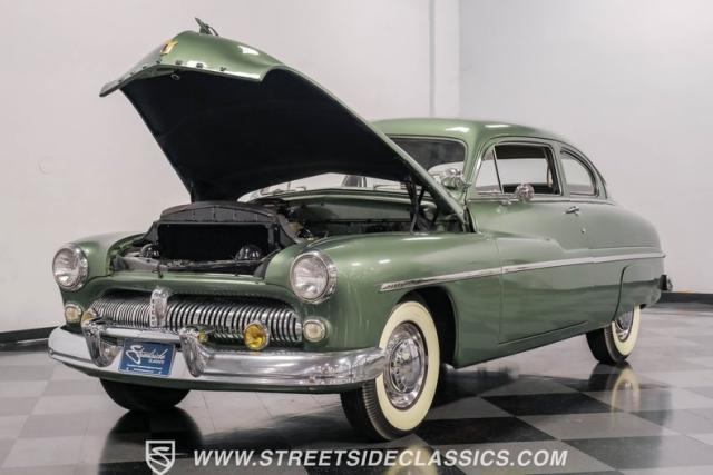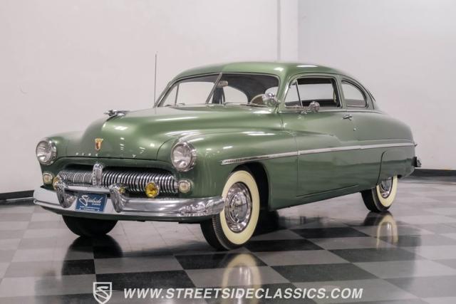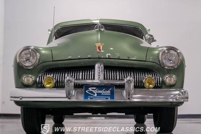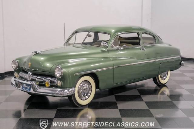 Somehow, this 1949 Mercury Eight has survived all these years without being converted into a custom lead sled - a rare feat for these iconic coupes! As a stock survivor with a repaint, the Berwick Green finish creates a bold presence, enhanced by loads of chrome including smaller pieces like the vent window air deflectors, gas door trim surround and front and rear bumper guards. Special touches include amber fog lights and a driver-side spotlight that are just 1940s cool and the body lines flow gracefully over factory fender skirts, while Firestone 7.10-15 wide whitewall tires wrap the 15-inch steel wheels for a classic stance.