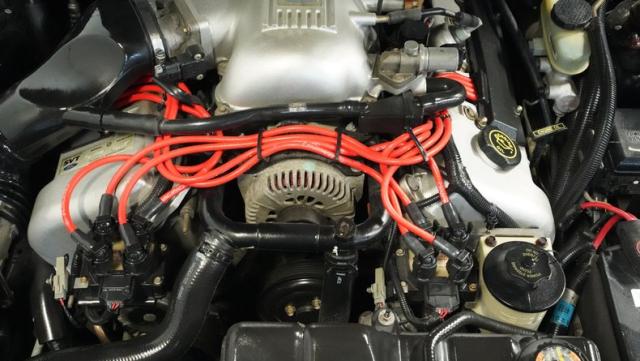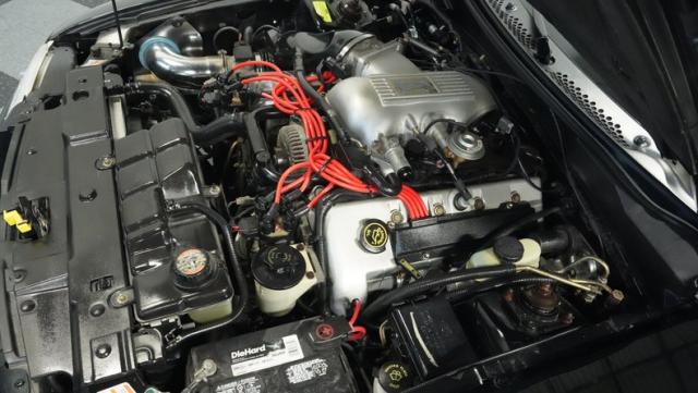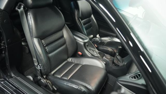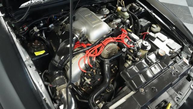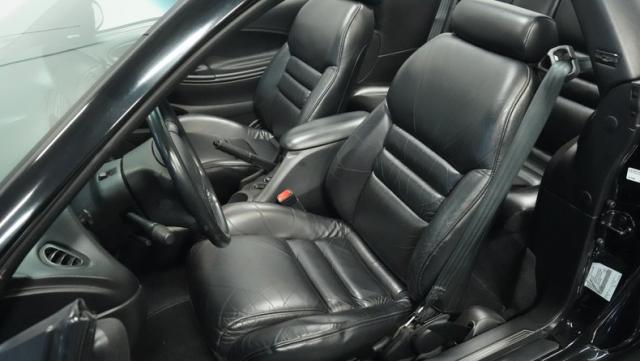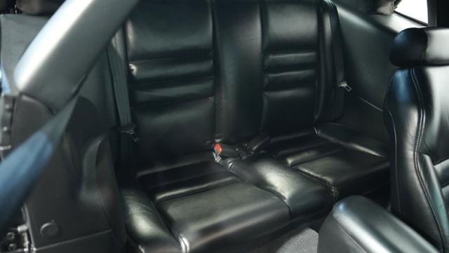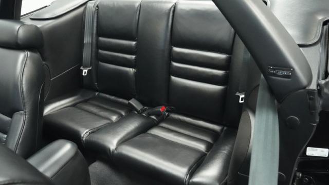 Inside, the black leather interior creates a cockpit-like atmosphere that\'s both sporty and refined. The front bucket seats, upholstered in high-quality leather, provide excellent support during spirited driving while maintaining comfort for longer journeys. Rear passengers enjoy factory vinyl seating, maintaining the premium feel throughout the cabin. The center console houses the shifter for the 5-speed manual transmission, placing total control at the driver\'s fingertips. Modern conveniences include air conditioning for climate control and an upgraded AM/FM/AUX stereo system with Bluetooth connectivity and a backup camera, seamlessly integrating current technology into this classic performance car.