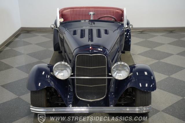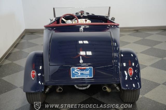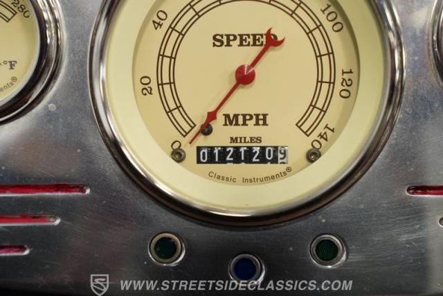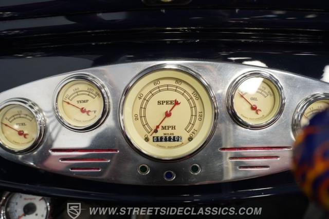 In addition to its head-turning looks, this roadster is also a blast to drive. It\'s powered by a 327-cubic-inch V8 that\'s fed by an Edelbrock four-barrel carburetor perched on an intake manifold by the same manufacturer and you\'ll get the impression right off that bat that this is a very strong, well-built engine as it sends a deep rumbling note out of a dual exhaust that terminates in aftermarket chambered mufflers. It pairs with a four-speed 700R4 automatic transmission with an overdrive gear to make highway journeys a comfortable proposition. Built on a fully customized chassis that includes a Mustang II-style front coilover suspension, this vintage Ford offers precise rack and pinion steering and a more refined ride than you often find in this segment.