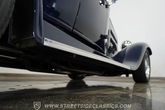 The Model A has served as a foundation for plenty of automotive projects, offering its singular vintage style to pair with high performance mechanical components geared towards lighting up the asphalt, but this 1931 Ford Model A Roadster happens to be a standout in its category and has the show trophies to prove it. With tasteful Navy-Blue paint draped over an all-steel body, this is one cool-looking ride, an open-air classic that impresses even at close range. The body panel fitment is very much on point, with nice, even gaps between the fenders, doors and rear quarter panels and the louvered hood, shaved door handles and razor-sharp contrasting pinstripes amplify its distinctive appearance.