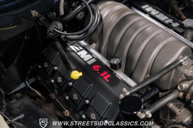 A 6.1-liter Hemi V8 sourced from a 2010 Charger R/T supplies serious muscle through a 5-speed automatic transmission and stout 12-bolt rear end. The powertrain breathes through a DynoMax dual exhaust system that announces this truck's capabilities. Power front disc brakes bring everything to a halt while the lowered suspension with coil springs up front and leaf springs out back delivers excellent handling. An aluminum radiator keeps temperatures in check while a Diablo tuner maximizes performance.